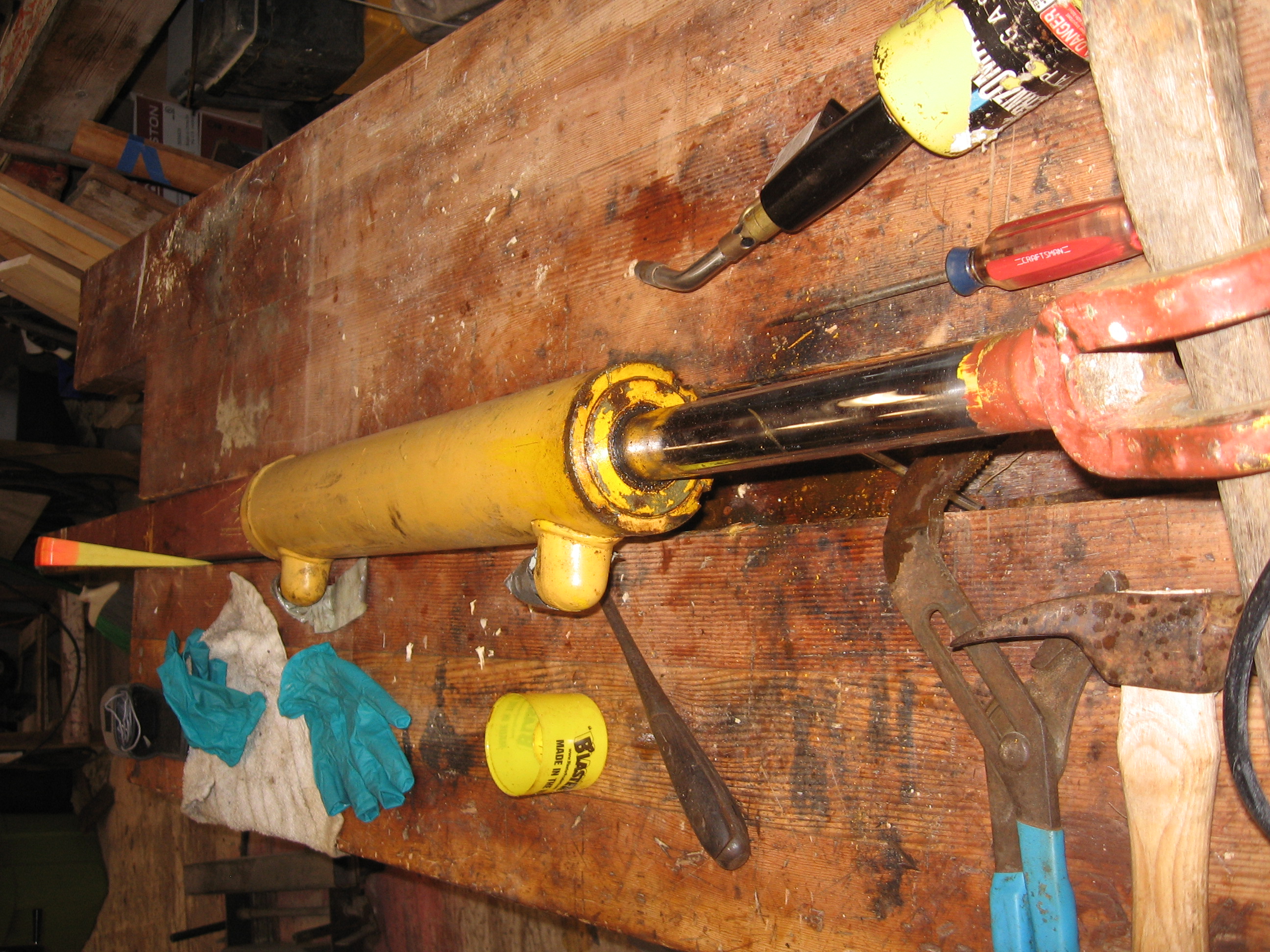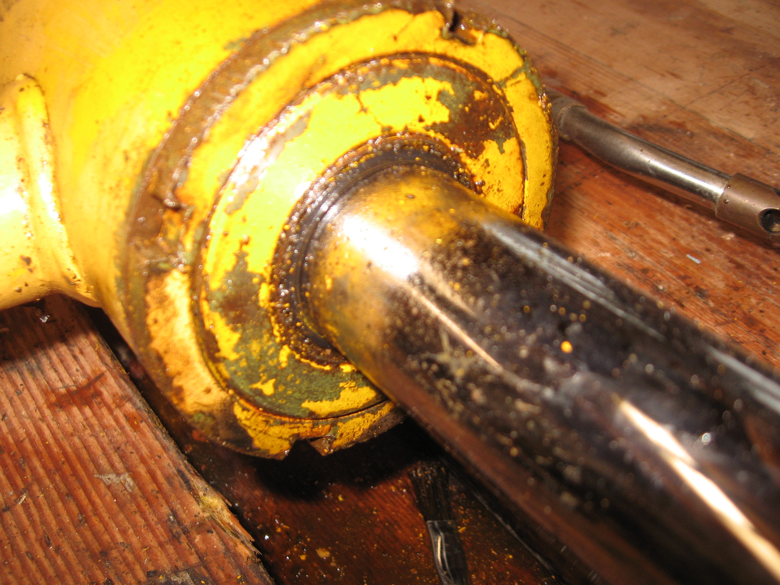 If the "Nut" spins the "guide" =gland. Place the cylinder in a vise, clamping just past the nut. That will hold the gland, allowing you to unscrew the nut. After taking the nut off, You drive the gland into the cylinder. There is a round wire circle in a groove inside the cylinder barrel. You pry that out. The seal kit will have a plastic ring (usually orange colored) with a teardrop shaped cross section. This is a tool to remove the gland and piston by filling the groove. Otherwise the seals will catch on the groove edges.