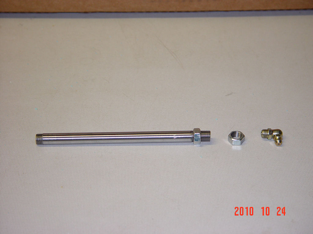 The first two photos show the unfinished and finished extension. Since I don't have access to affordable zinc plating, I painted the tube and nut with JD's buff primer and medium gloss black spray cans. I baked them in the wife's oven when she was out for the day at 170-degrees for 20-minutes.
