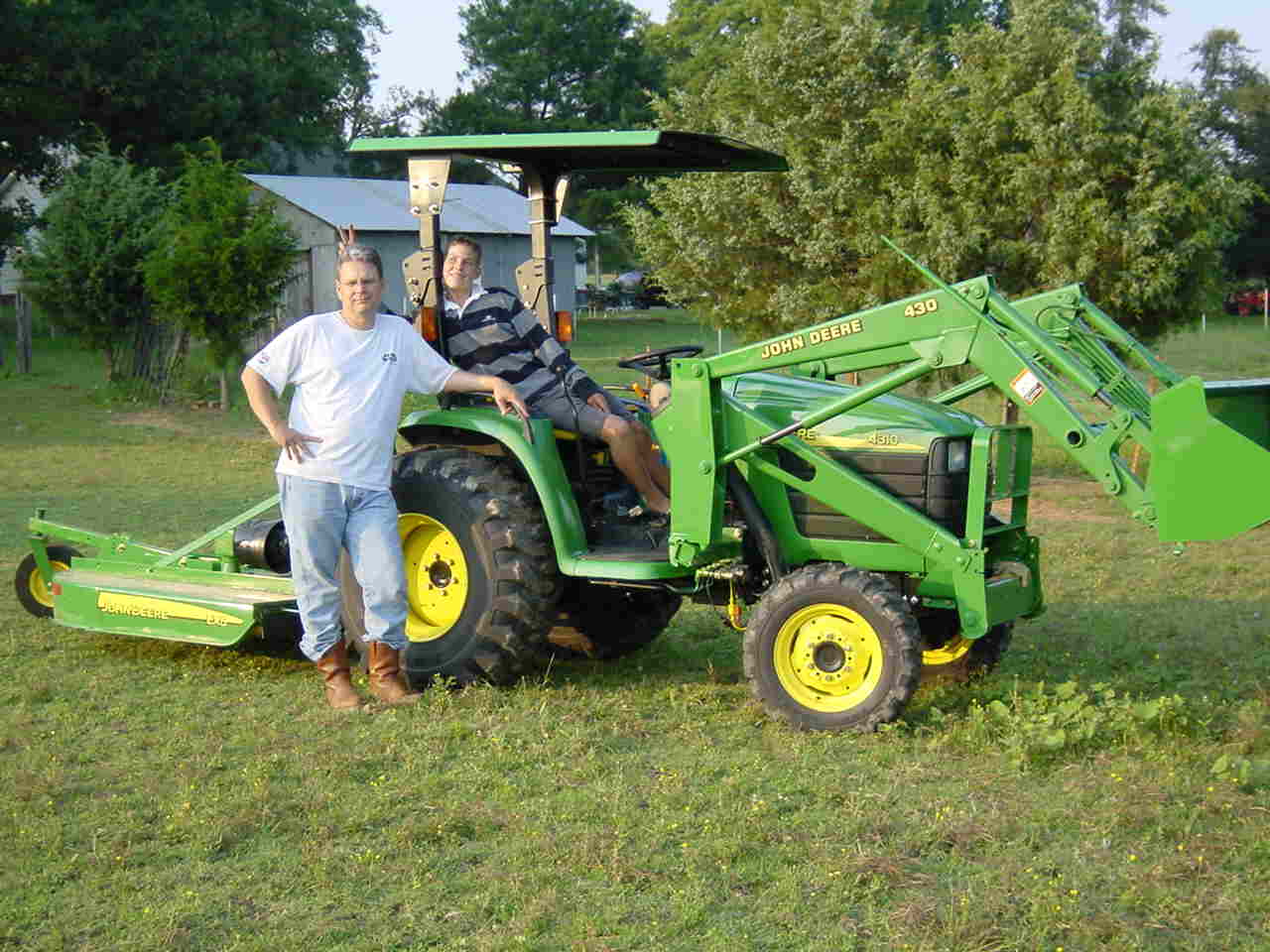 Well the waiting is over.... I bought it today and brought it home. It's GREEN from the 4310 E Power Reverser tractor, the 5' Frontier box blade, 430 loader, and LX5 cutter, all the way to the trailer... It's all John Deere GREEN. I do like it and I really appreciate all the advise...I have attached a picture below....Thanks to everyone... /forums/images/graemlins/smile.gif /forums/images/graemlins/wink.gif