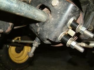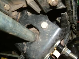 This pic is trying to show that at the top/left area of the bracket, there is a second hole not being used, very close to the smaller shiny metal nut. I'm wondering if that hole were used for bracket, if that might give shaft a bigger/better hole to run through, so it's not rubbing bracket.(The other bolts may not line up if I do that though). ALSO, I noticed the bottom spring/adjustment had a washer on the back side, against the bracket. That washer seems to shift a little when the spring is tensioned. Maybe washer is too big??