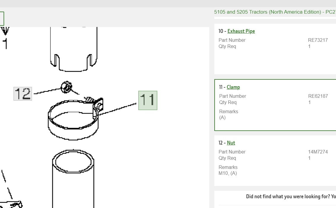 I'm not usually one to complain about the price of parts but I recently came across one that does seem to be way too expensive. From the John Deere Parts List a RE62187 looks to be a regular muffler clamp for over US $60!
