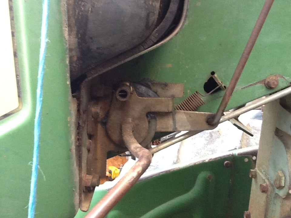 Go to your third pic (apparently 3 pics with duplicates ?? ) and you will see the mechanism that has the double nuts on the backside to adjust (and it appears someone has greased it which may be the problem and some gas to cut that grease may be in order).