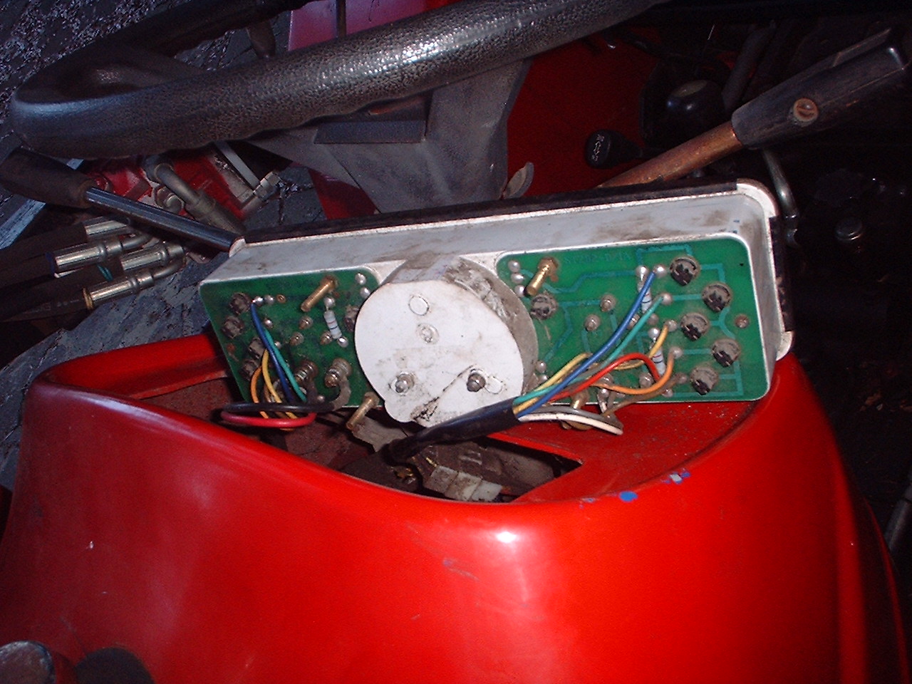 Headlights and tail lights work. Here is a pic of the back of the cluster. On the right side (as shown) you have fuel gage (top) water temp (bottom)....on left side as shown, oil pressure top and ammeter bottom.