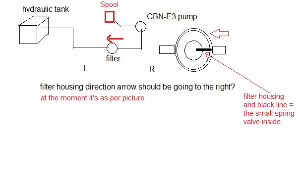 Hello everyone,hydraulic problems and working my way down to the source of the problem and one of the question I have the hydraulic housing direction seem to be wrong... attached to this is a picture showing the direction should be going right and the arrow currently is pointing going left