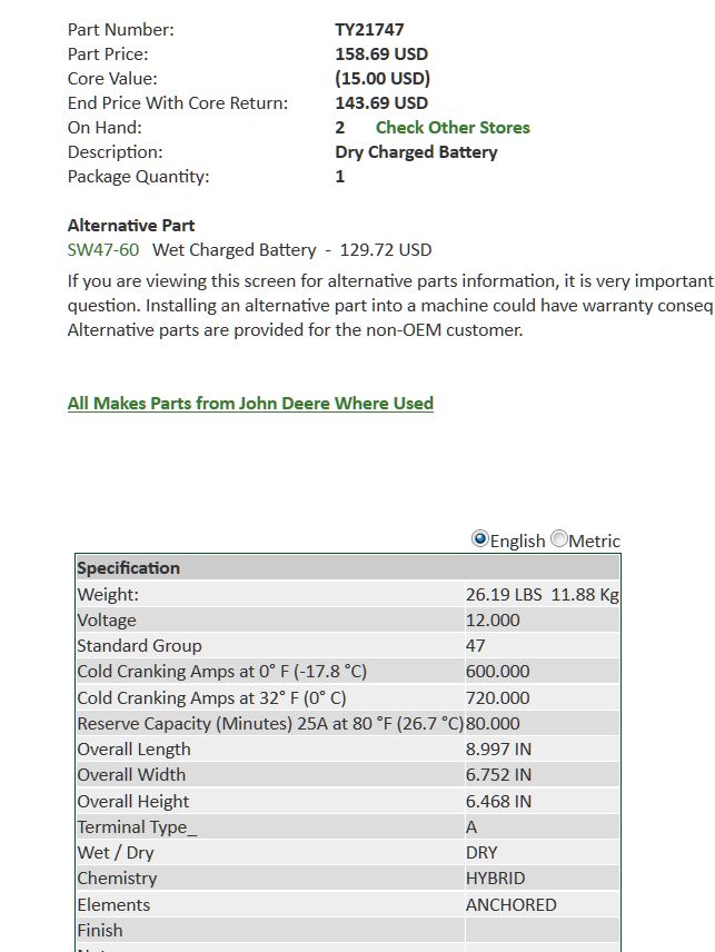 I have a JD 2155 that i just got the alternator rebuilt on. My brother in law took out the old bad batteries and now they have dissappeared.:confused2: Does any one know the size/group number that fits this tractor????? I have the two battery set up. Thanks