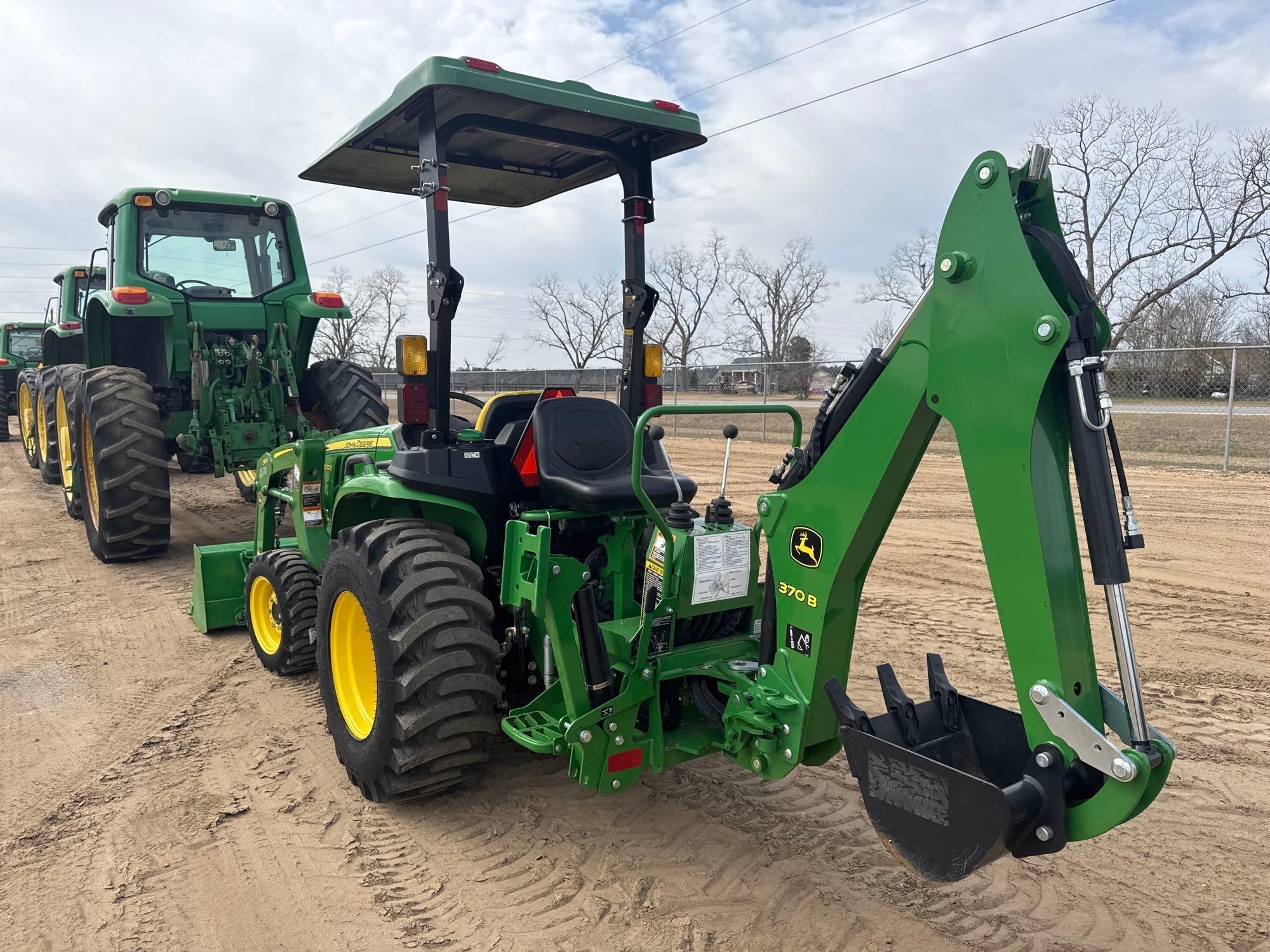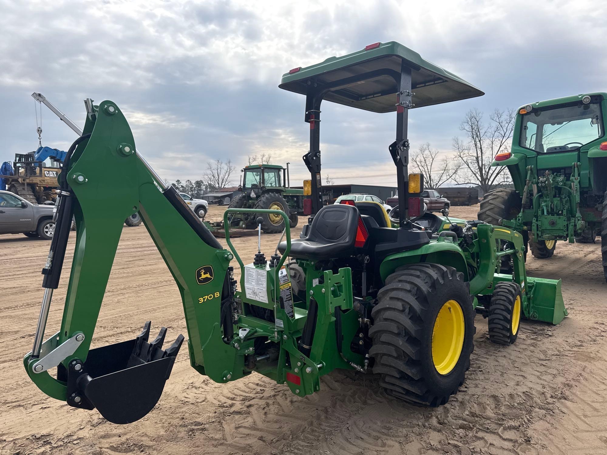(HRS SHOW-120), JOHN DEERE 300E FRT LDR, BUCKET, 4WD, ROLLGUARD, CANOPY, HST, JOHN DEERE 370B BACKHOE ATTACHMENT, BUCKET, OUTRIGGERS, LIFTARMS, PTO, 1 SET HYD REMOTES, S/N-1LV3032EKNP146719 **WARRANTY UNTIL 7/12/29 OR 2000 HRS**