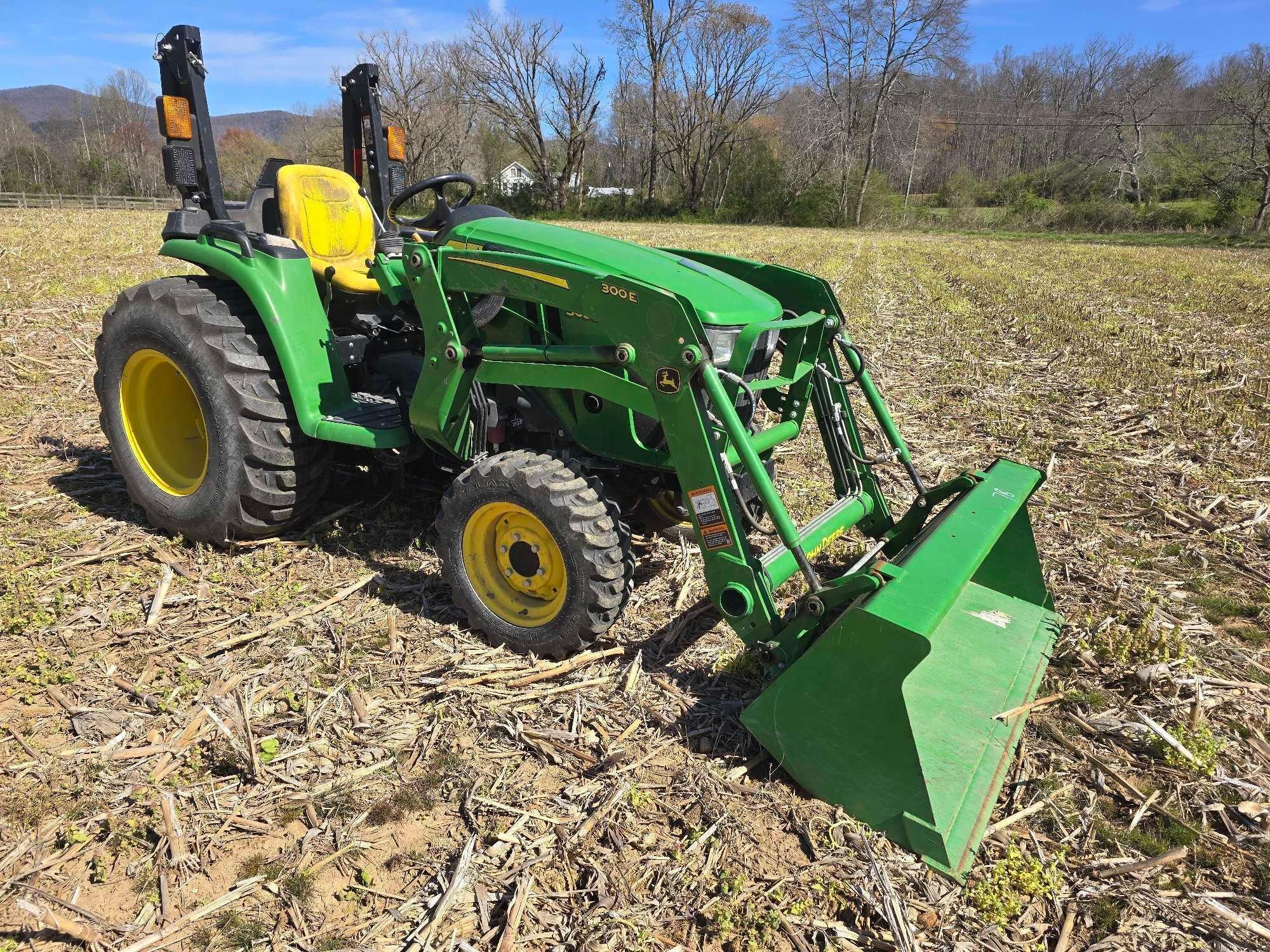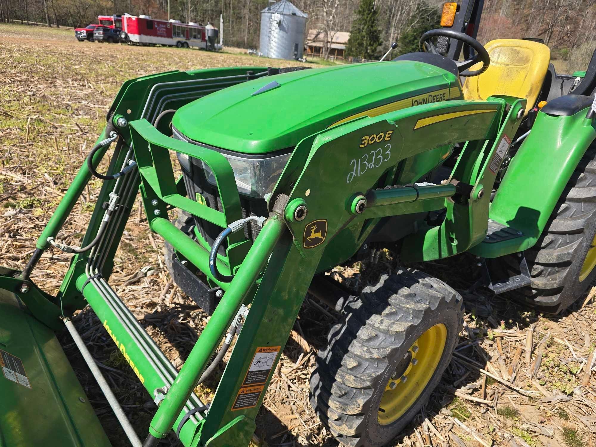 (HRS SHOW - 151) ROLLGUARD, JOHN DEERE 300E FRT LDR, BUCKET, HYDRO STATIC DRIVE, 4WD, COMPLETE 3PT, DRAWBAR, PTO, SN- 1LV3038EPMM134270