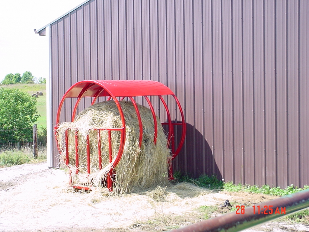 I even built my own roundbale feeder (picture attached), to keep them up off the ground. Got my ole' gelding spoiled with second cutting, and he wastes a lot of the first, so hence, the upending, and feeding, just what they will clean up.