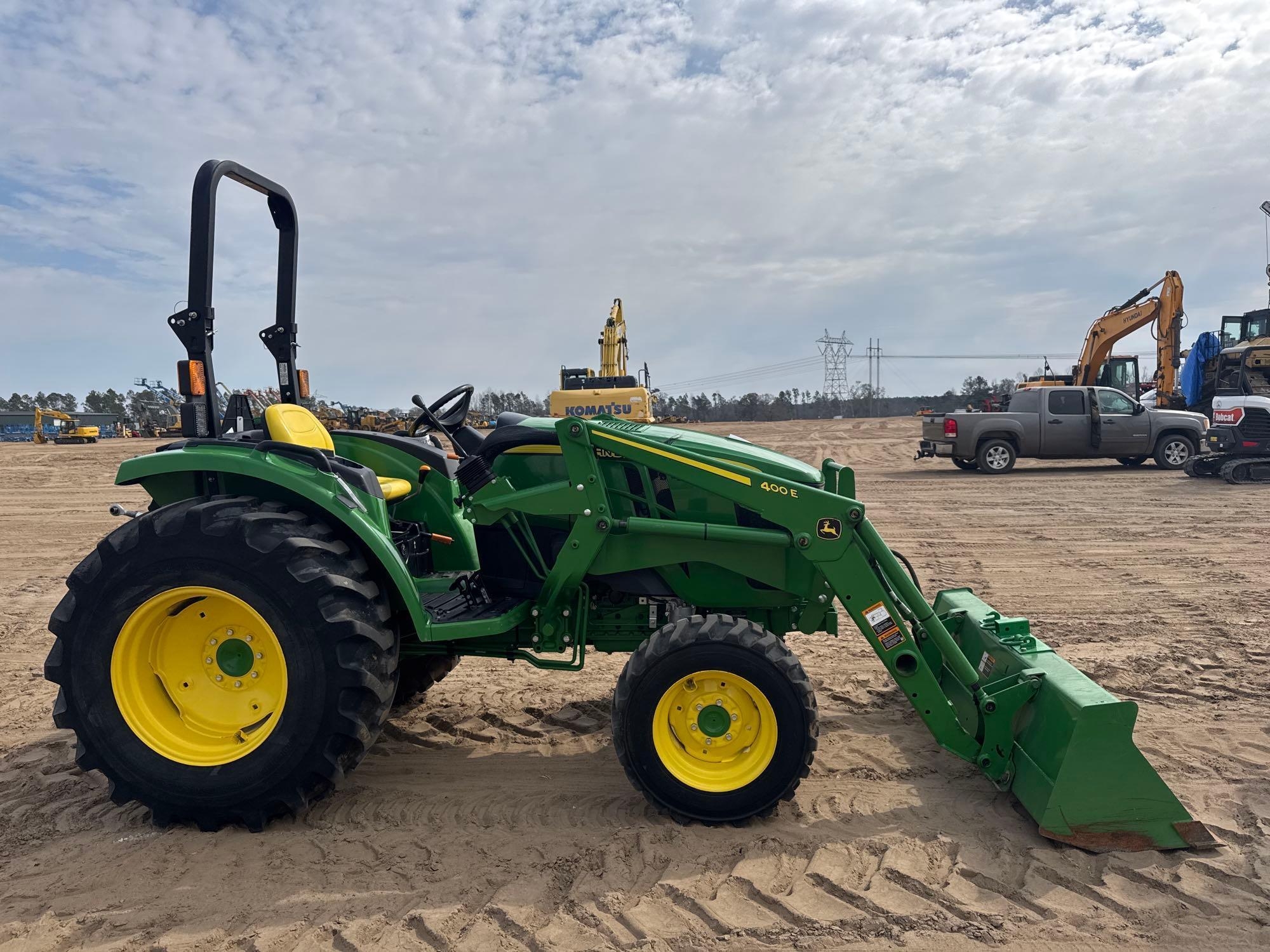 (HRS SHOW-459), JOHN DEERE 400E FRT IDR, BUCKET, 4WD, ROLLGUARD, COMPLETE 3PT, DRAWBAR, PTO, HST, S/N-1LV4044MKMM114786 **WARRANTY UNTIL 8/12/2027 OR 2000 HRS**