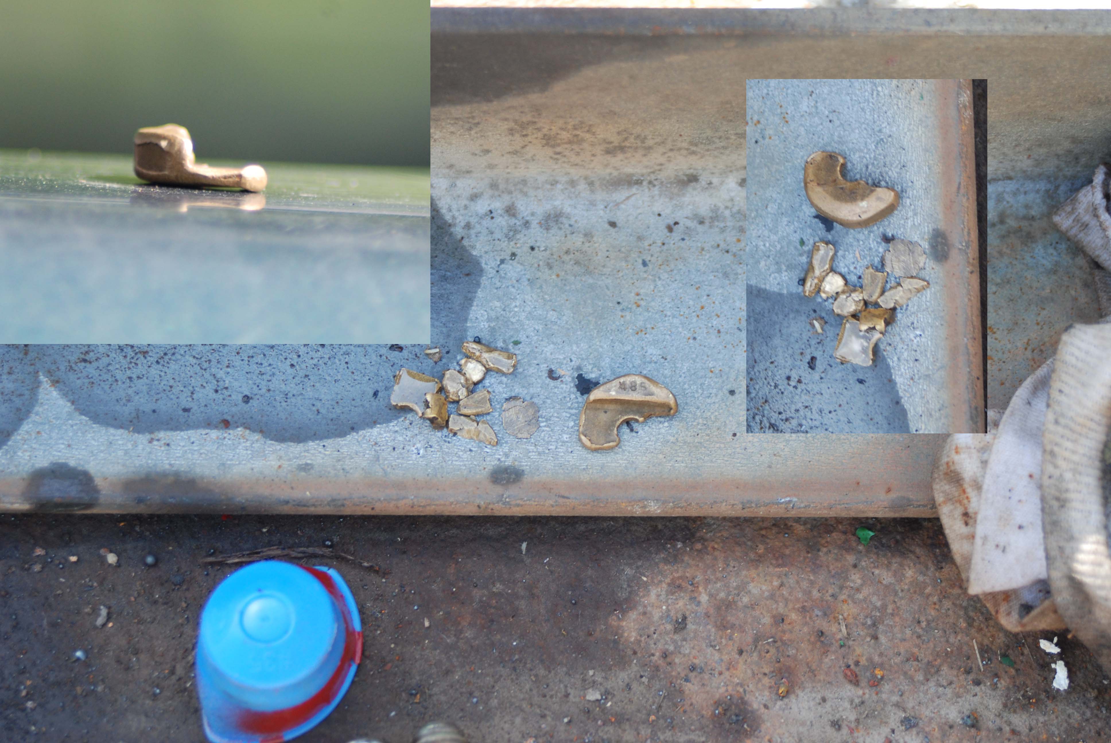 In the mean time, has anyone ever experienced this problem. Our old 336 baler with a kicker had this problem, and we solved it by adding a squirt of grease to the the spring inside the control unit where the distance control wheel is. This has not helped with the problem this time. I am wondering if maybe because of the brass pieces (see picture), I am not getting enough pressure from the pump to kick the bale/return the pan after each kick. Could the brass pieces be part of the pump assembly? Or is the broken brass a red herring, and I am barking up the wrong tree. Any insight would be greatly appreciated. I initially asked this question in the JD forum, and you can see the discussion at this link.