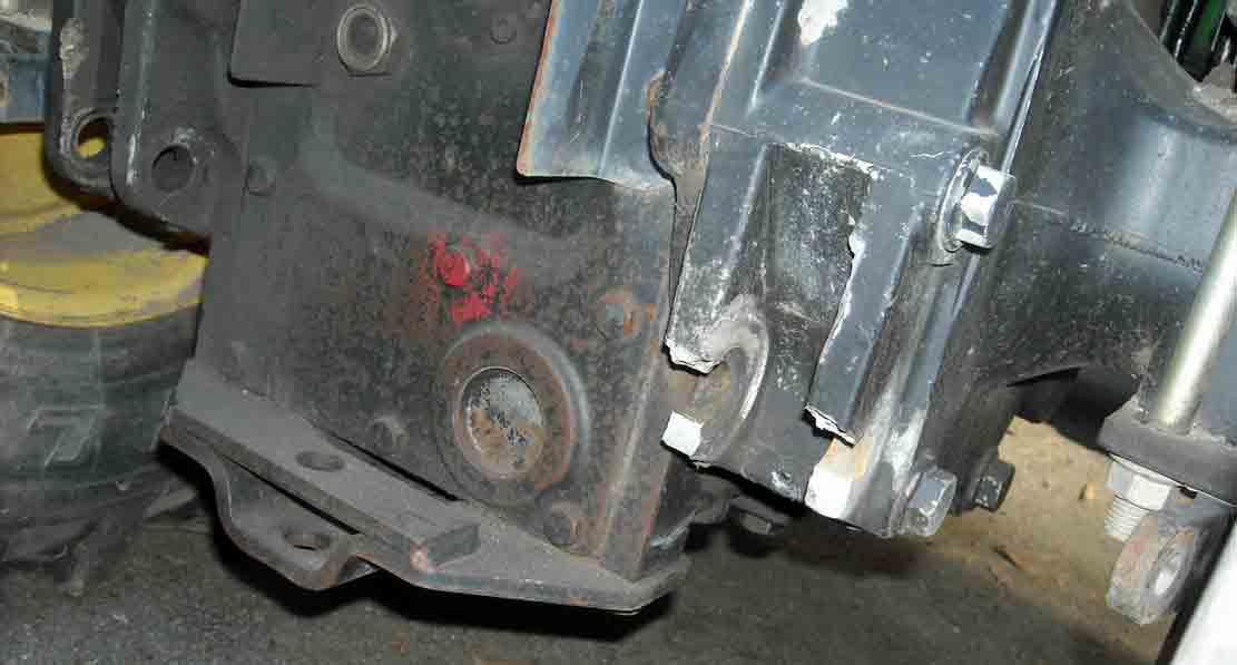 engine is dead, and I can see a bent FEL cylinder rod and a broken axle