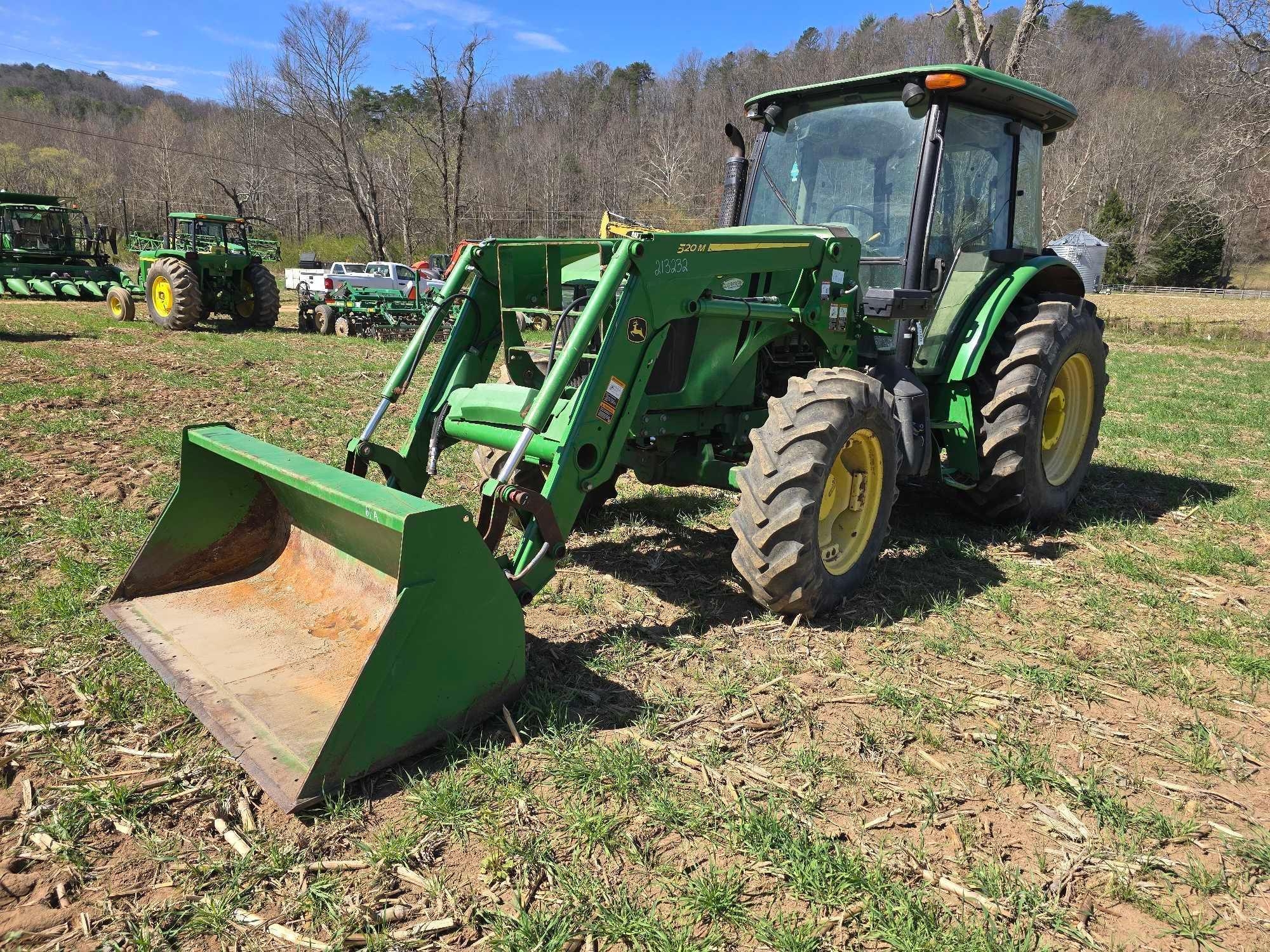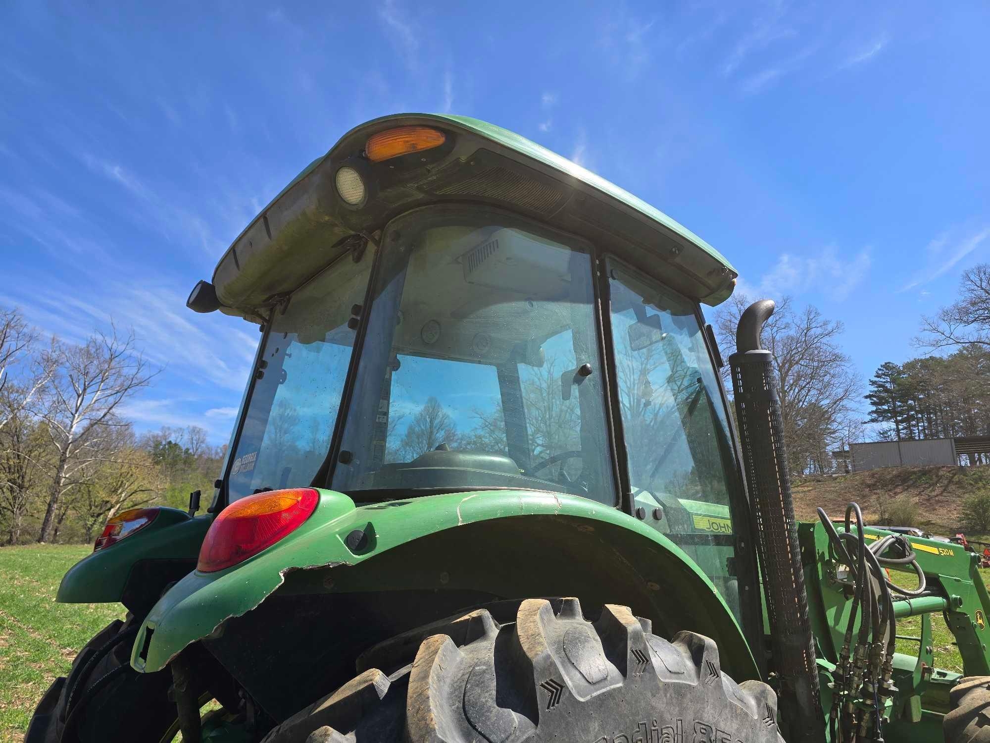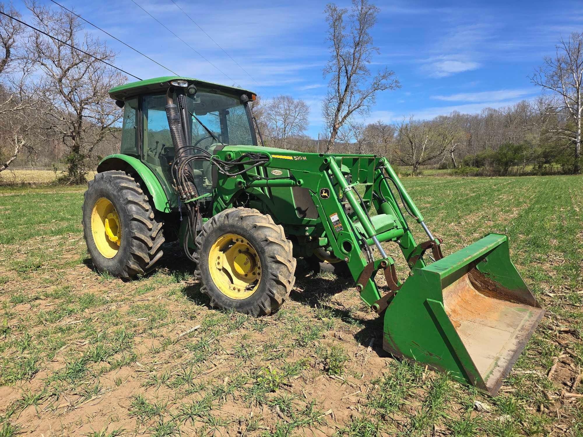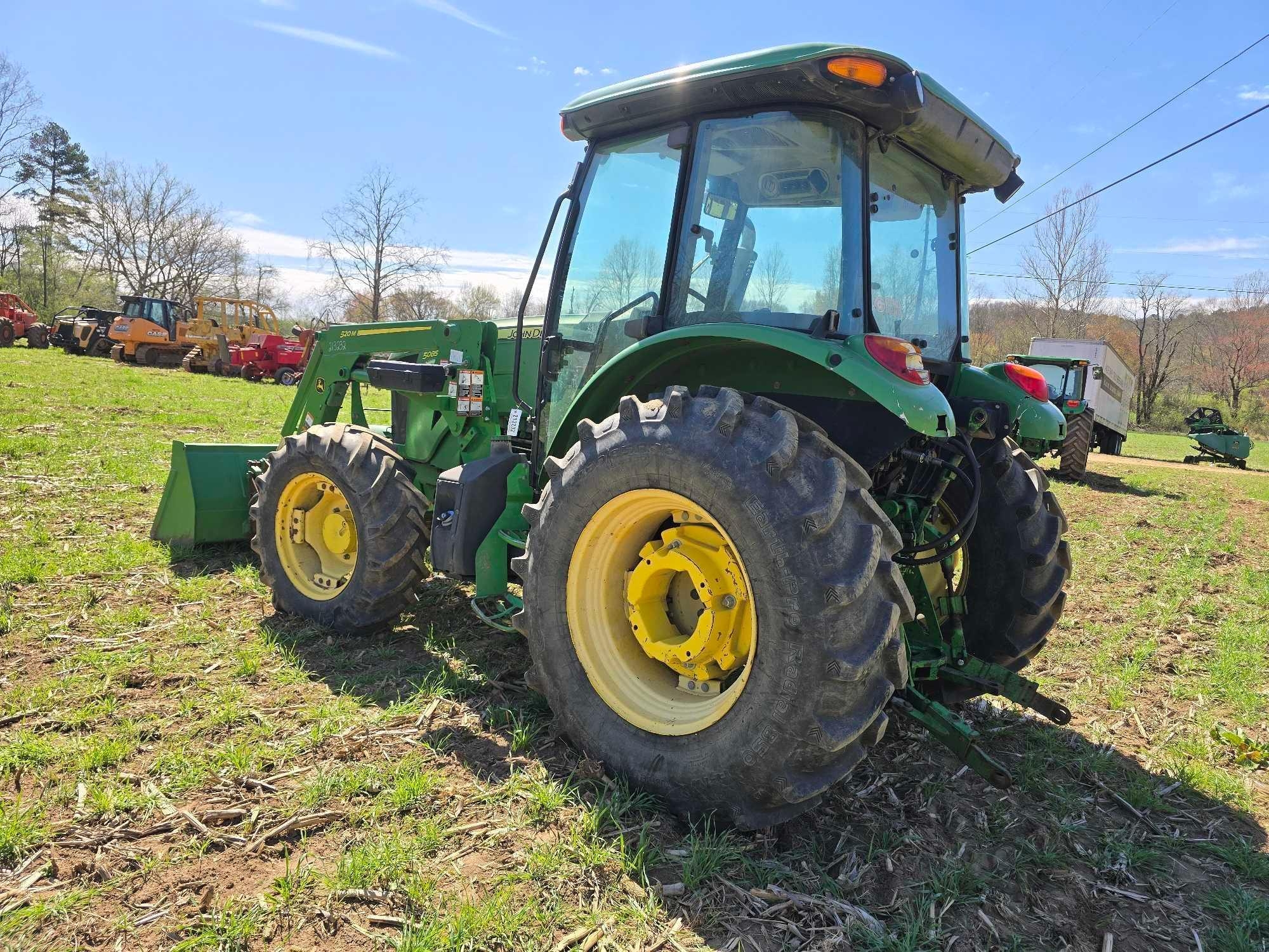 (HRS SHOW - 5016) CAB, JOHN DEERE 520M FRONT LDR, BUCKET, 4WD, COMPLETE 3PT, DRAWBAR, 3 SETS HYD REMOTES, REAR WHEEL WEIGHTS, 460/85R30 TIRES, SN- 1LV5085ECFY440195
