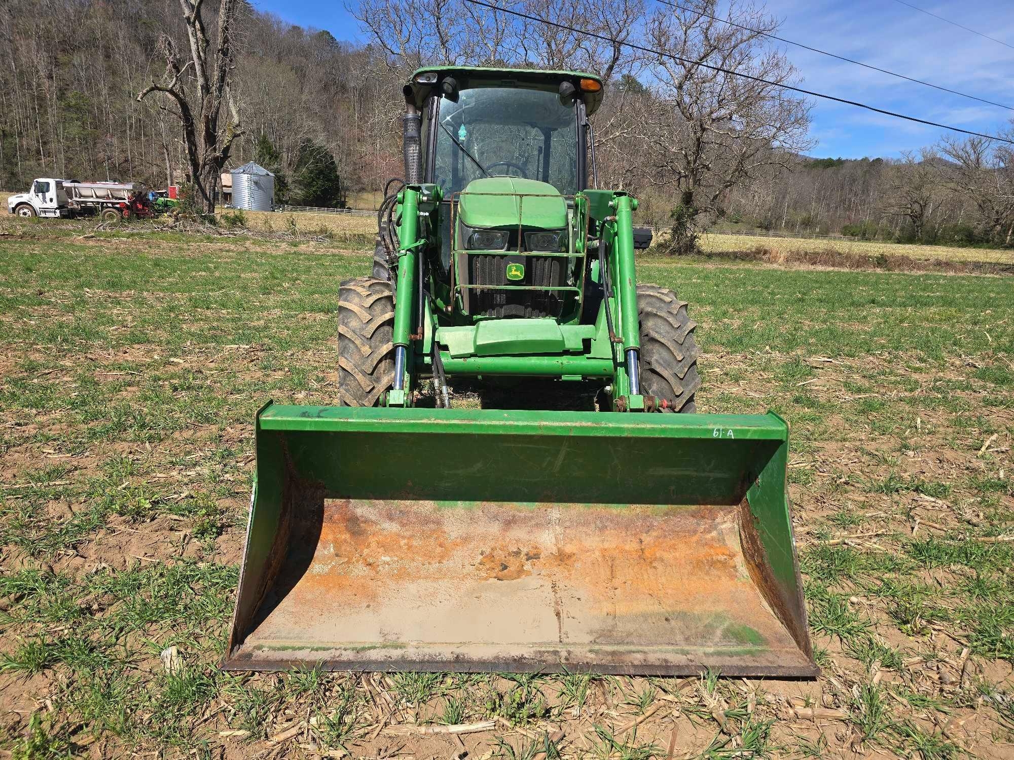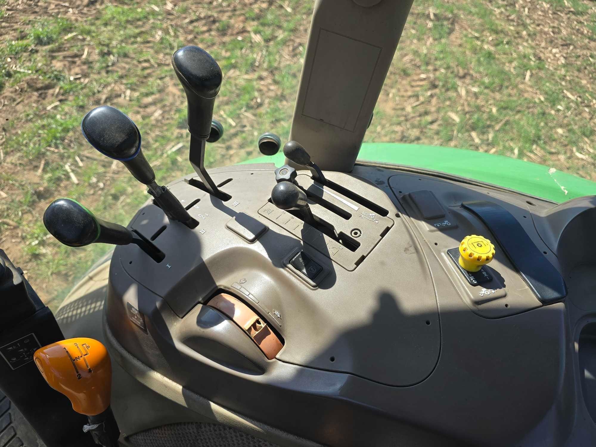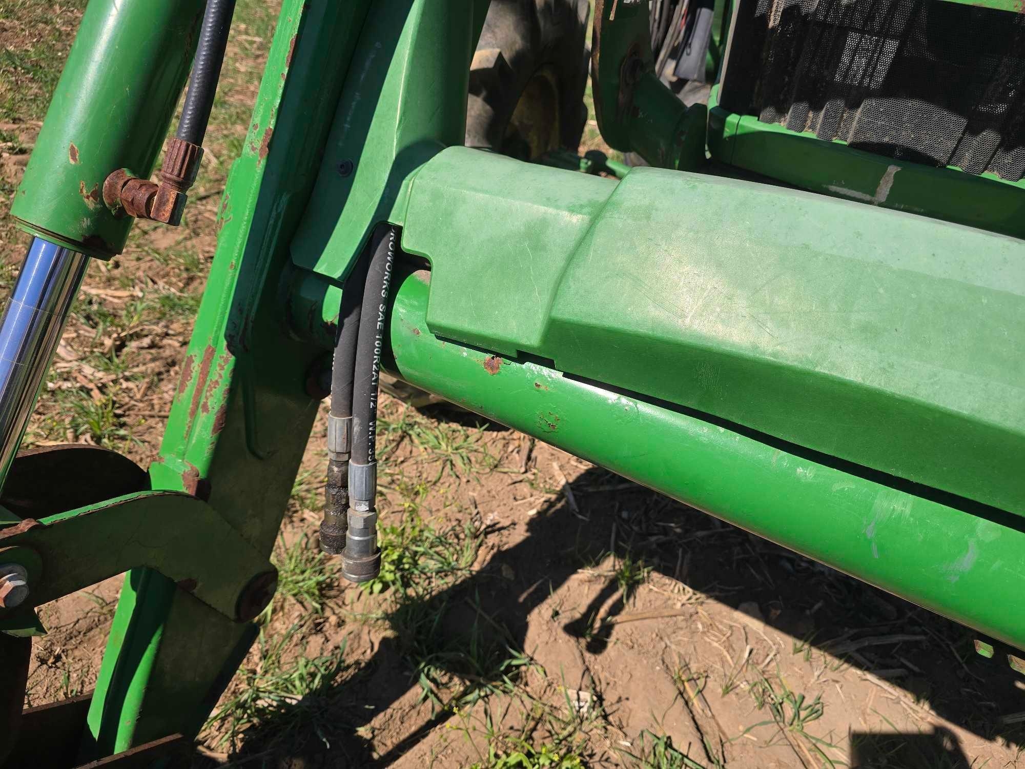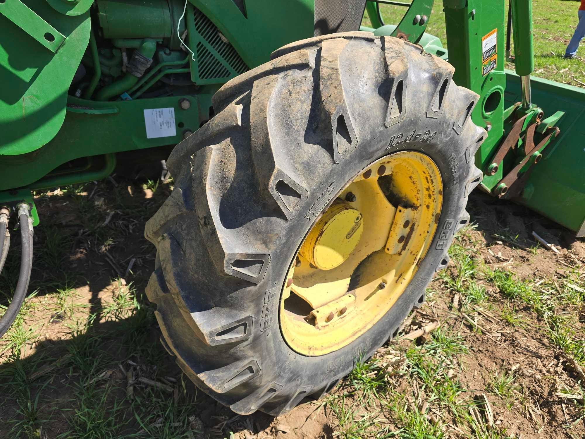 (HRS SHOW - 5016) CAB, JOHN DEERE 520M FRONT LDR, BUCKET, 4WD, COMPLETE 3PT, DRAWBAR, 3 SETS HYD REMOTES, REAR WHEEL WEIGHTS, 460/85R30 TIRES, SN- 1LV5085ECFY440195