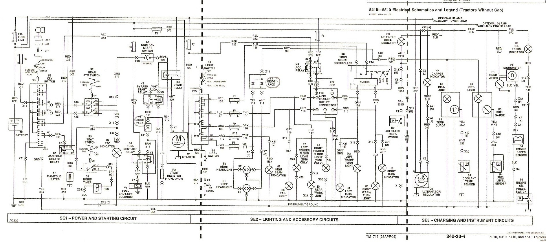 Looking at JDparts, it looks like the wiring for the 5X00 and the 5X10 is about the same. I had a problem with my 5210 that the dash lights did not always work. I replaced the diode pack (for the 5x00 it is part number RE262484, $17.08 from greenfarmparts) and the dash lights worked. The diode pack is located under the left cowl and is the front little box. The diode pack is also used for the headlights both high and low. This statement was taken from my tech manual - Diode pack also blocks current flow from feeding back across one headlight circuit to the other.