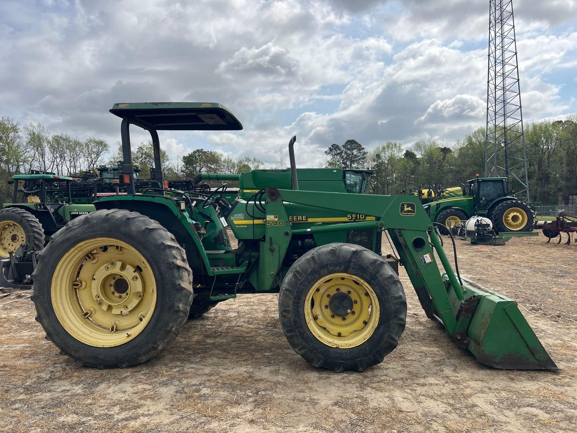 (HRS SHOW 3192) W/ JOHN DEERE 540 QT LOADER, JOHN DEERE QT FRONT, GP BUCKET, ROLLGUARD, CANOPY, 9SPD SYNC SHUTTLE TRANS, 2 REMOTE OUTLETS, JOYSTICK CONTROLLER, SN- LV5510S150084