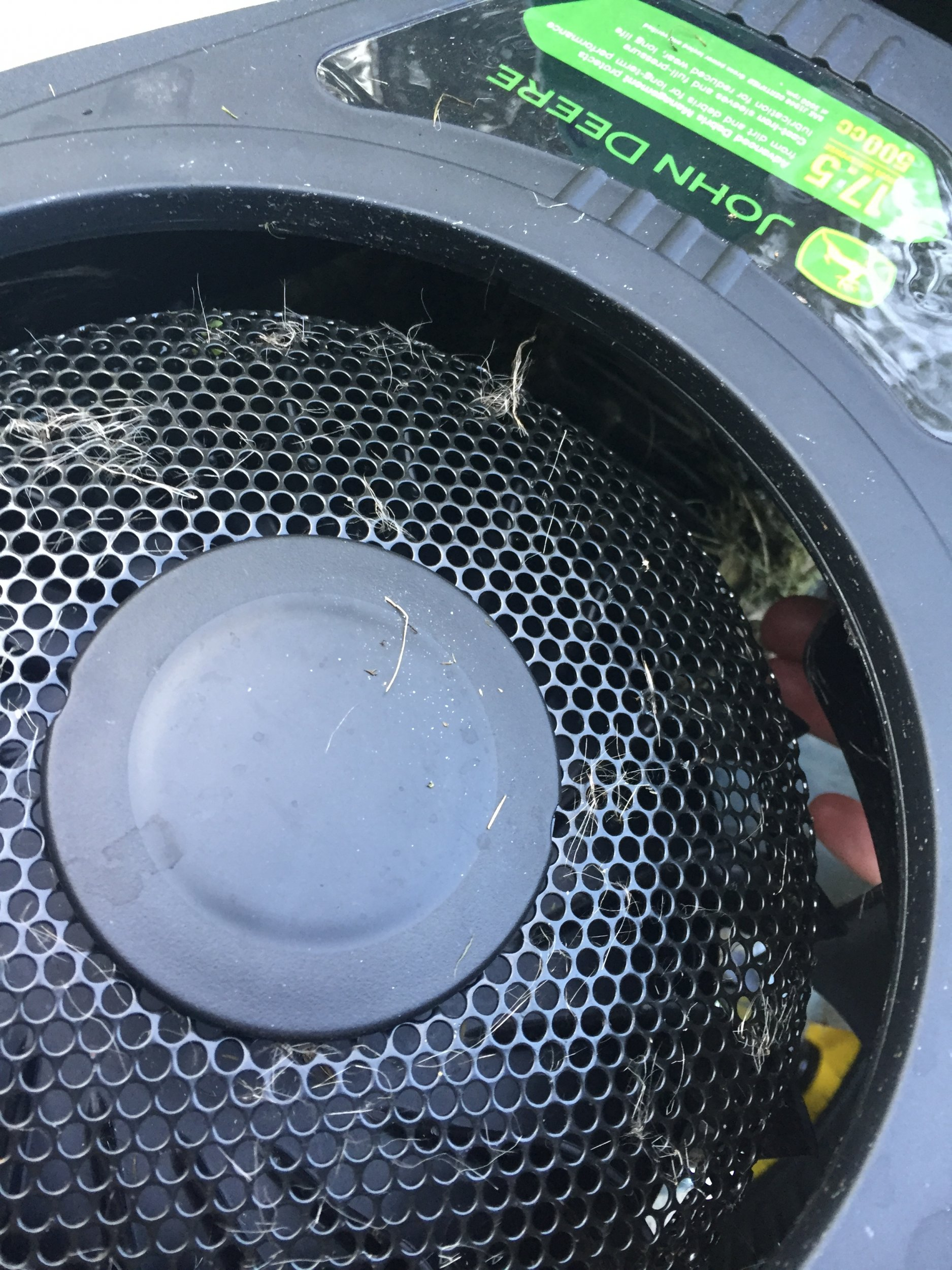 It’s now mid august here and we saw some gray thistle seed and grass stuck in the new S100 JD mower.