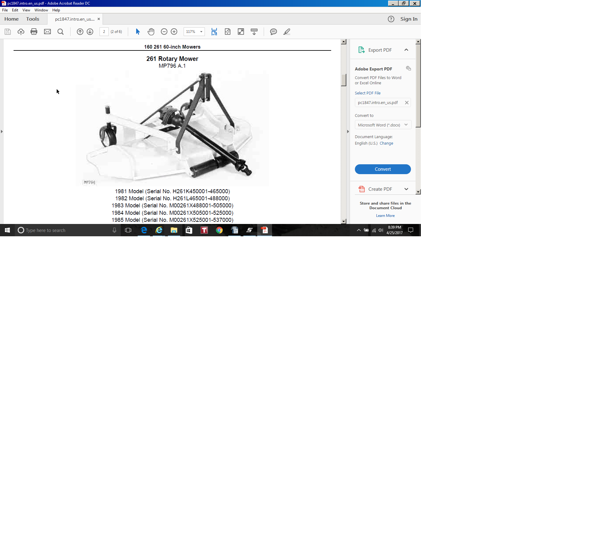 I purchased a John Deere or Frontier finish mower at an auction and I have the serial number but not the model. Does anyone know where to find a page that will show the model if you enter the serial number?