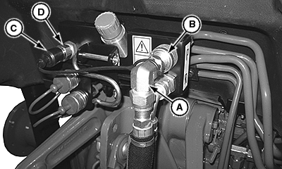 5. Attach implement return hose to coupler (D).