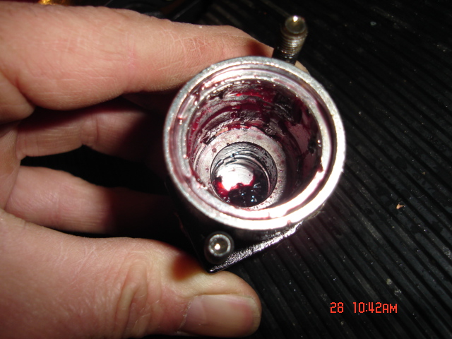 Well, I just did the same thing, and saw what others have described - no broken springs, not condensation, just a bit of red grease. I tried moving the lever with the cap loose, tried rotating the cap 180 degrees, tried moving the split ring, tried removing some of the excess grease from the spring, and it still doesn't work properly.