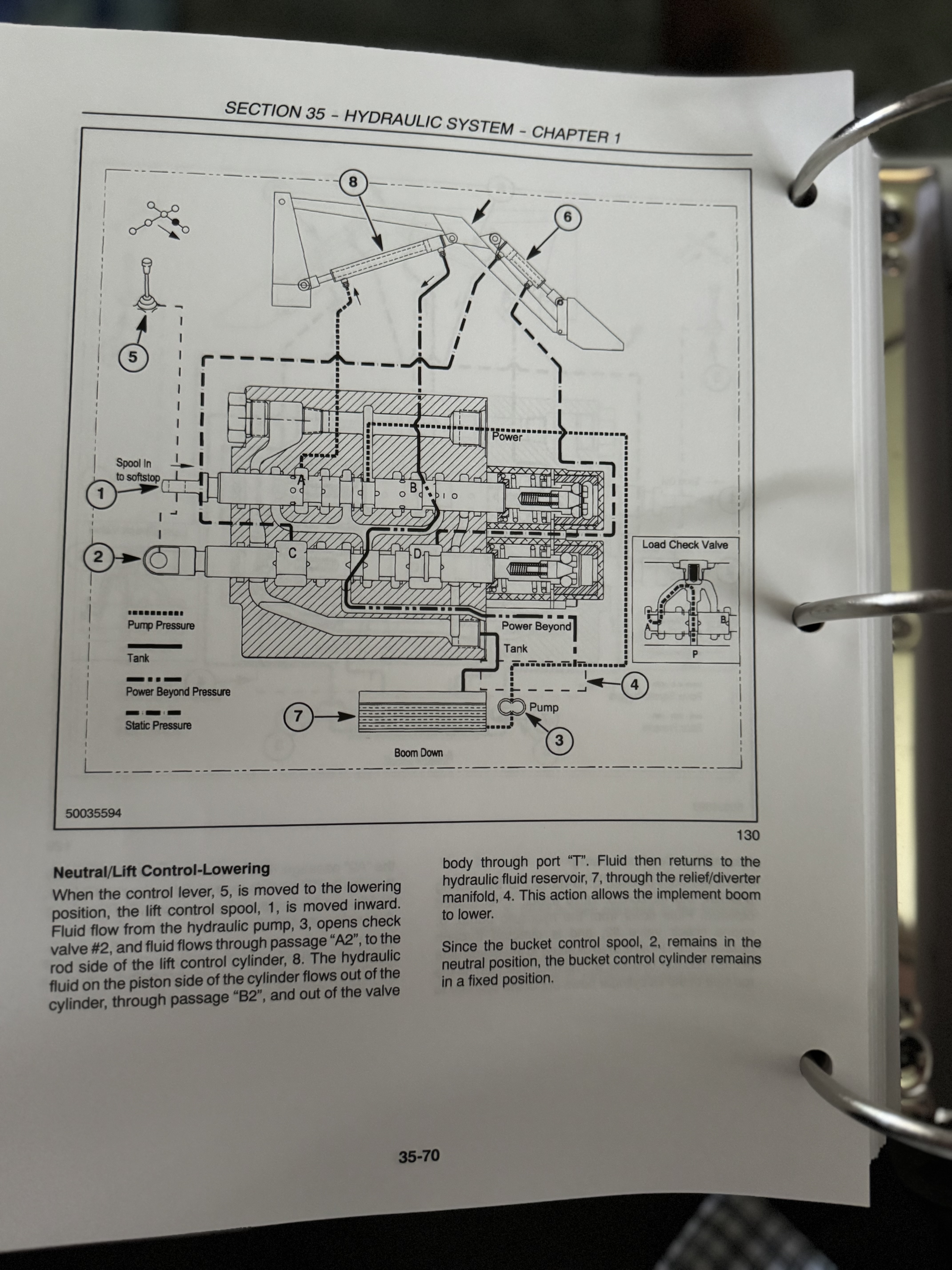 I wonder if the load check valve listed in bucket control could be messed up (lower right of diagram). But it looks it’s part of the spool #1.