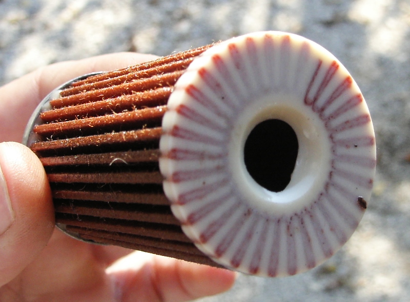 The guy who owned it before me had used an aftermarked oil filter and (it now appears) an after market fuel filter. The $%#%# bottom of the filter is plastic and has an irregularly shaped hole in it