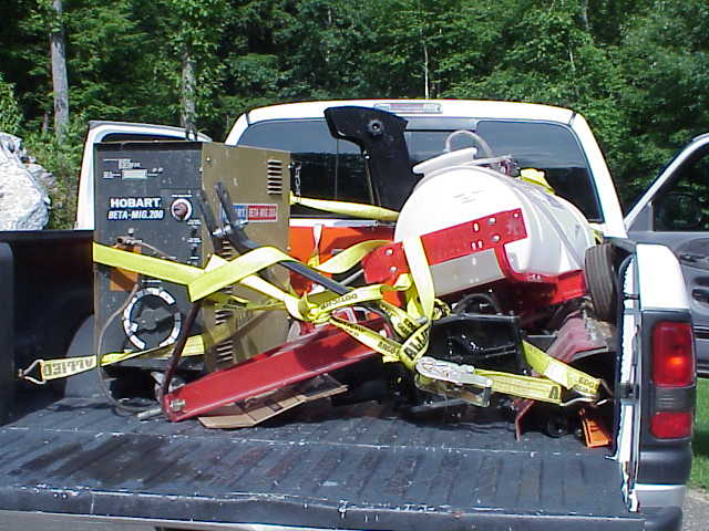 I recently learned of a "used" BX snow blower in NJ, and I sent an e mail to the person selling it. Turns out that he was just listing it for his father who wasn't computer savvy. Got a telephone number and called to discuss the blower. Made a tentative offer on the blower and was told that it had to be picked up within the week. He was moving to the South Pacific for a job transfer. Enlisted the aid of LarryRB to do the driving with his Dodge Diesel Pick-Up. We traveled 199 miles in exactly 3 hours. When we got there, I examined the blower and saw that it was as close to new as possible. The paint was perfect and there wasn't even any paint worn off the auger blades. Then we went to the rear garage to get the rest of the parts. Here is where the "gold" was stored. While in the rear garage, I purchased a 6' rear blade, a 26 gallon electric pump sprayer and a Hobart 200 amp MIG welder. All this including the blower for less than 1/2 of what a blower costs from a dealer. Good thing that I didn't have more money with me, because we were out of space on the pick-up. Thinking of going back for more, but I am already having a hard time hiding all this from Mrs. Junkman. When she arrived home, she made the cursory cruise around the house to see what had been added to the rest of the "junk" hidden in the back 40..... /forums/images/graemlins/grin.gif