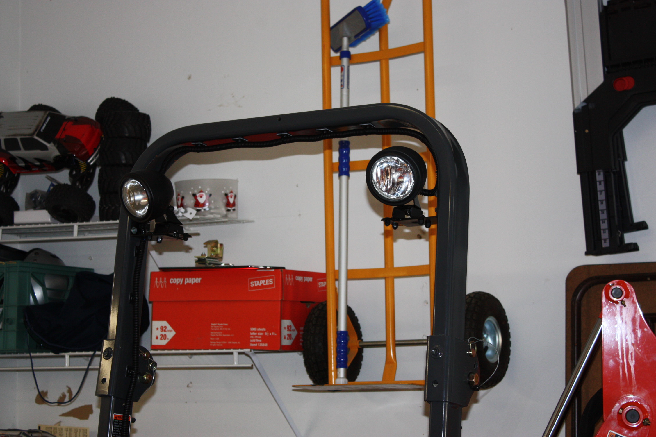 Thanks, I see your going with the magnet mount. I explored that option but changed my mind. Looking back it would have been much easier however. That is a Traxxas Emaxx you are seeing. Wanna buy it? I have a small r/c habbit, many planes and a couple of trucks. I ordered a couple of the red switches, one for future use=) With the plugs right under the fender its very easy to wire. Yes, I can just rotate one or both around to face the rear, works well. Thanks by the way for your advice on buying the tractor, I appriciated your imput.