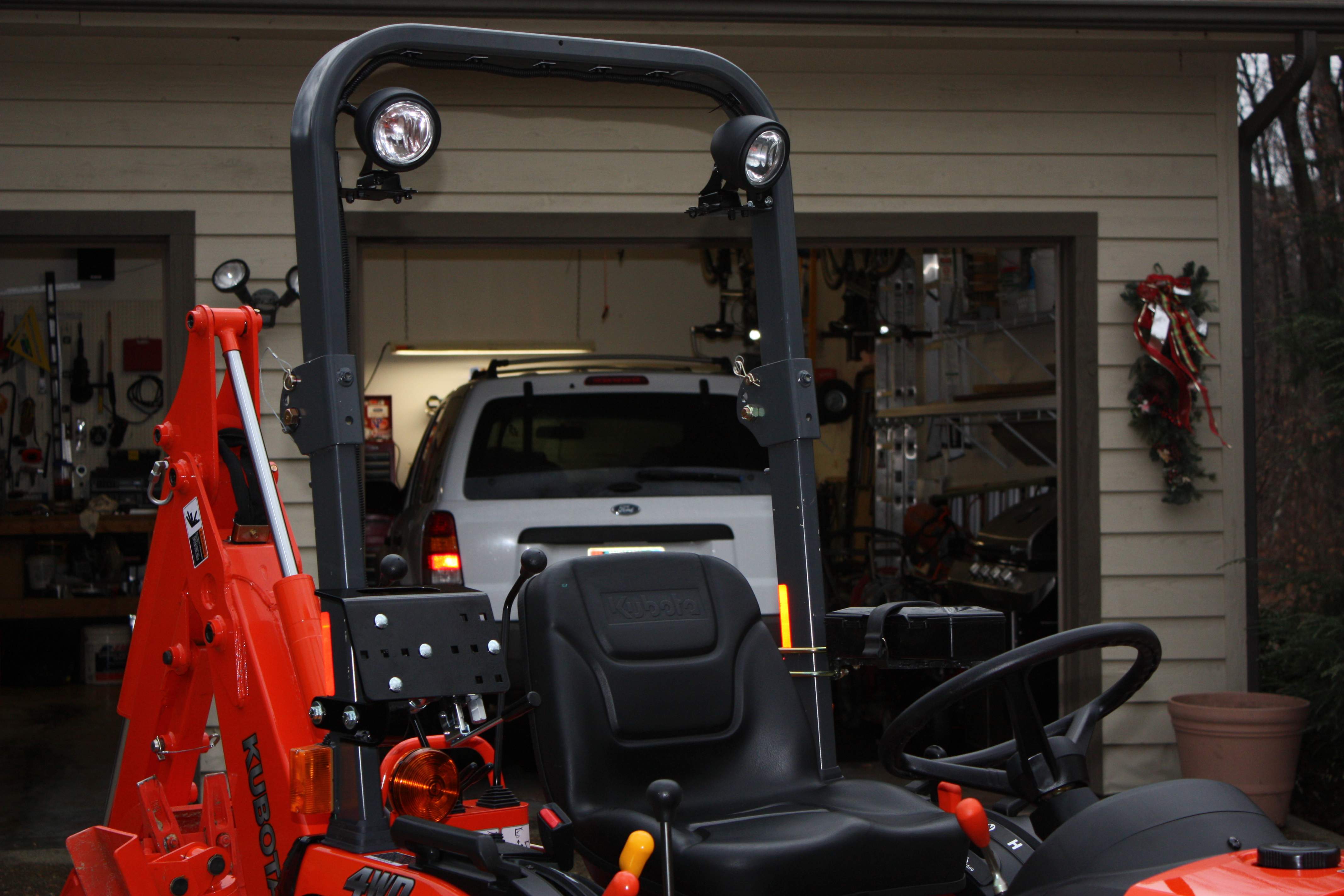 Nice Job on the lights. I think I will buy the Hella Optilux's for my Bx2230. Just curious, why didn't you just mount the light directly to the ROPS? Is there an advantage for you to use the simpson bracket?
