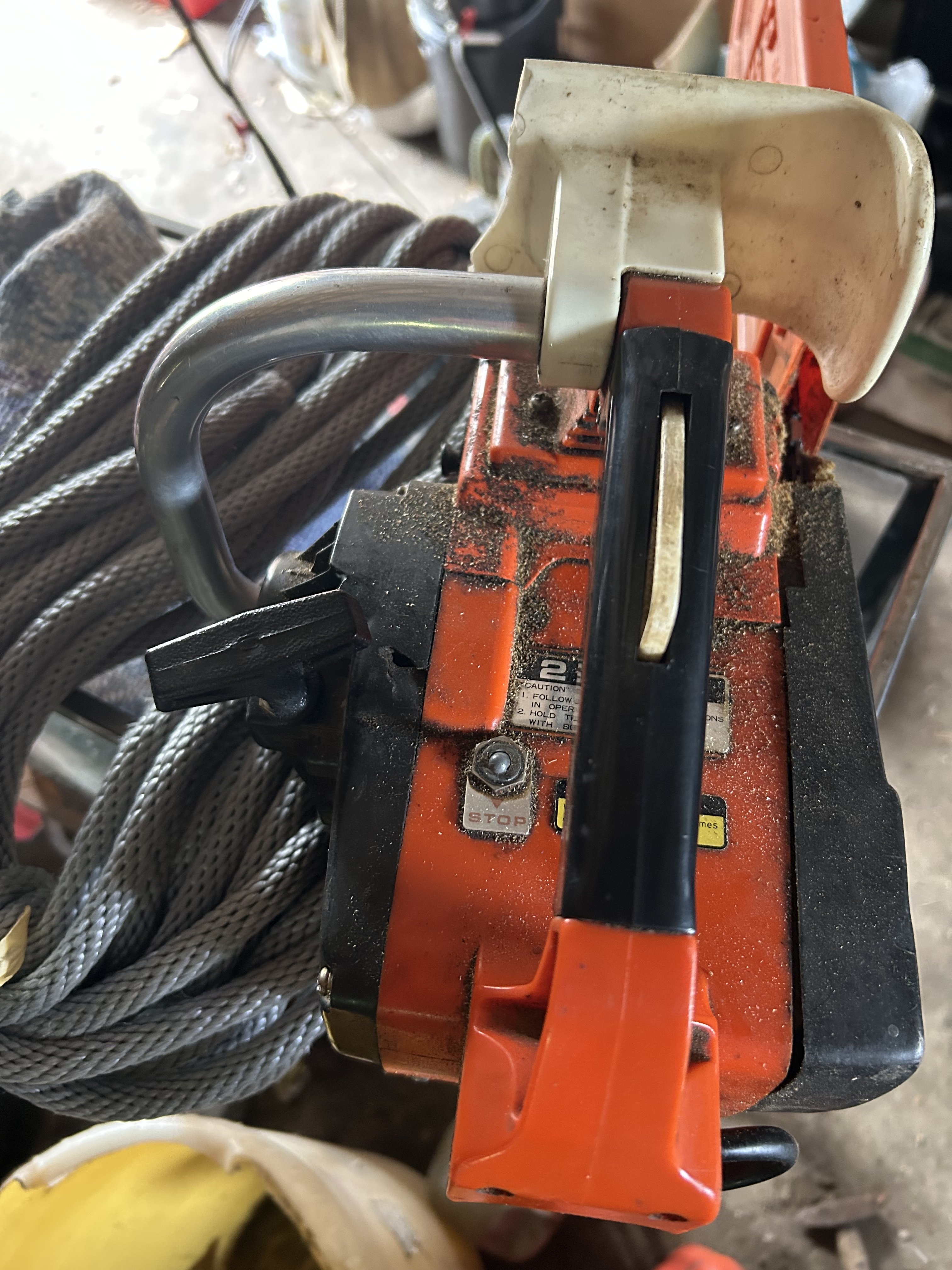 This was my grandfathers. He bought it new at Ekert Brothers in Sugarcreek many years ago. Dad has it now and tries to use it on occasion. He has had it to a shop several times but they can't seem to get it right. I mostly think they just don't want to screw with it so they don't put much into it. It will run until it get warm. Cool little saw when it works.