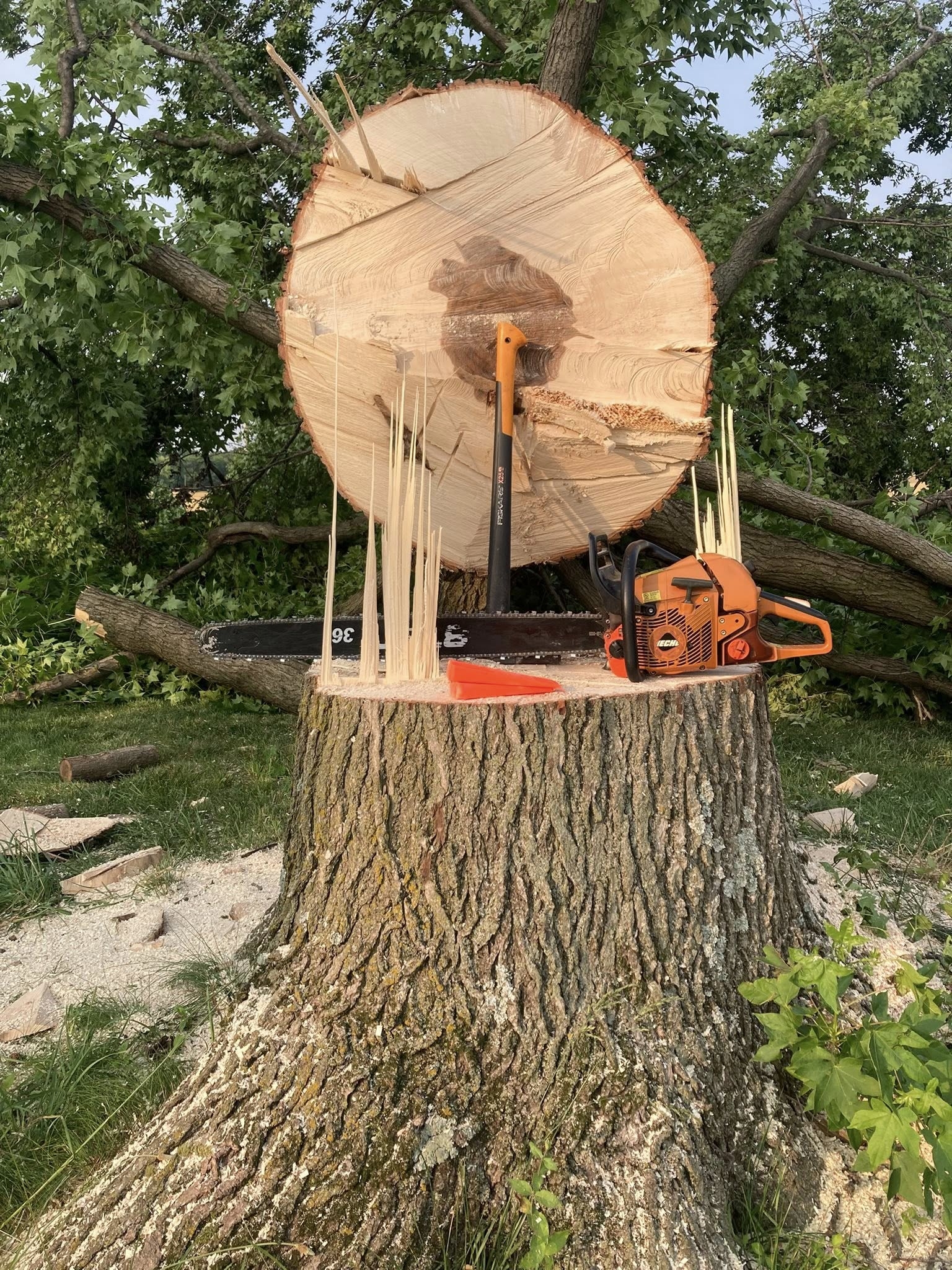 He bought this 36" bar to drop and mill this sweet gum tree with.