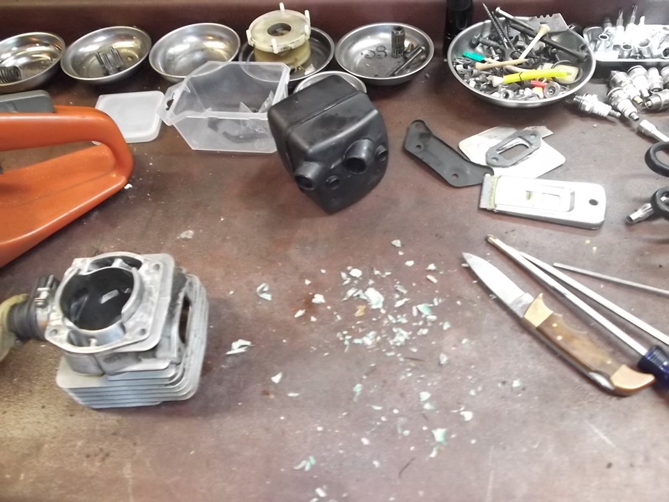 Reringing and deleting base gasket on a locals saw. New muffler he brought to add too.