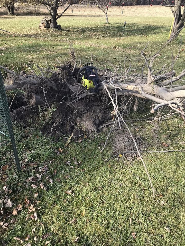 Got that bigger apple roots that went down in tornado in Aug flipped out. Had to wait on corn taking in.