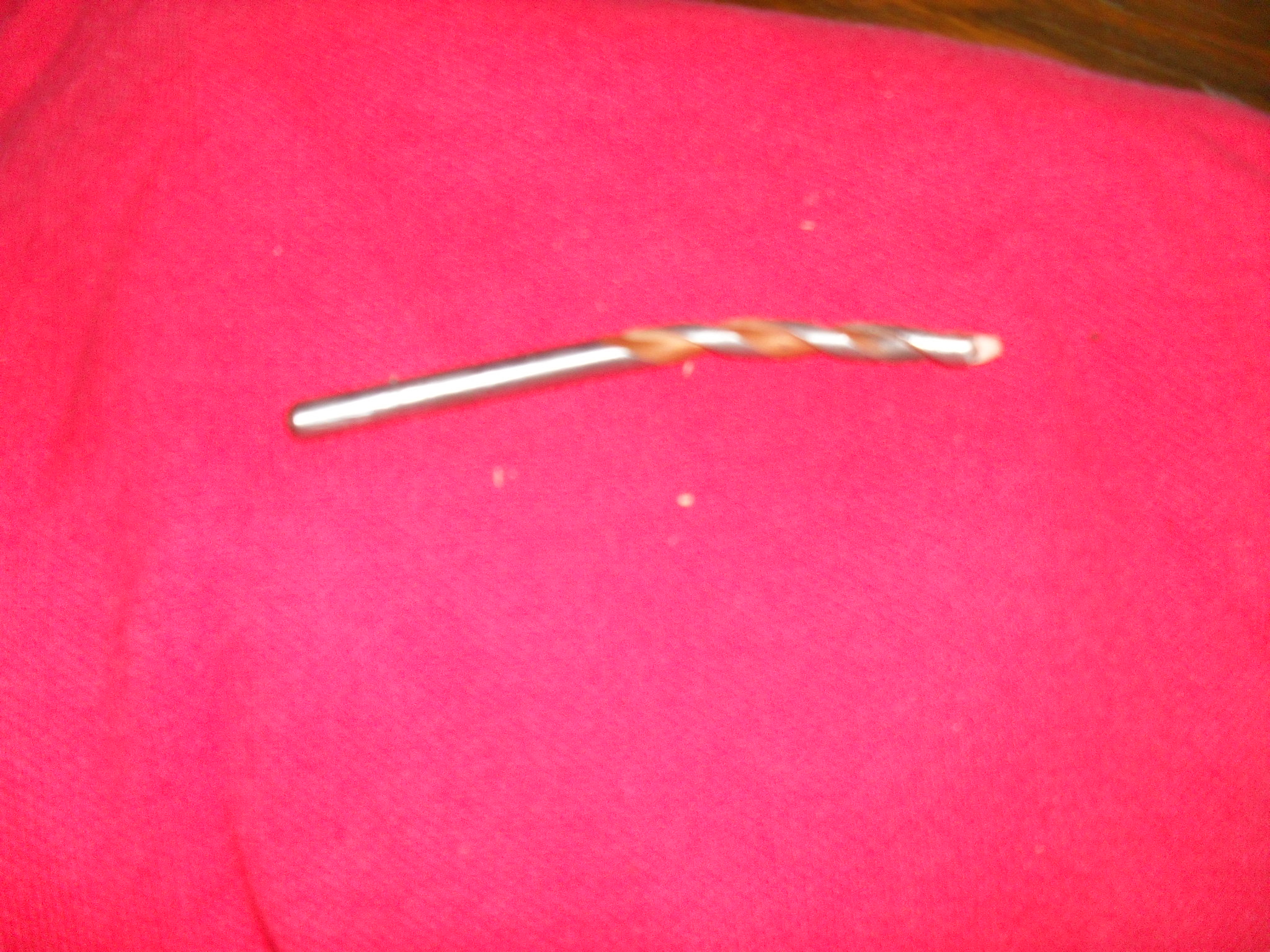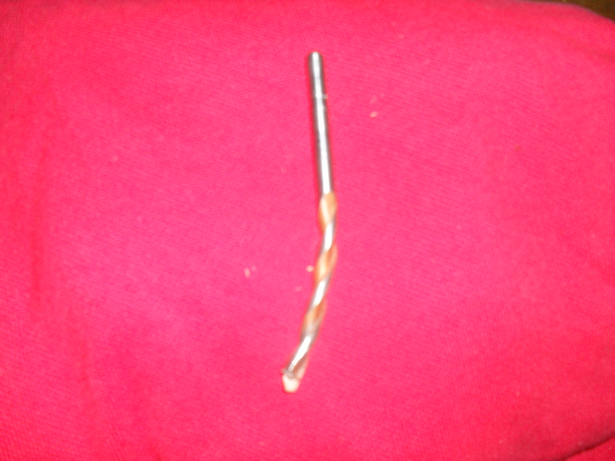 The drill was cooled during the drilling operation but not enough as the end snapped off the bit whilst drilling about an inch in and the bit caught in the hole and started spinning the ball bearing which was slightly out of true on the bit. Before I could hit the off button on the stand drill, the bit bent as it was so hot and the ball spun it into the shape below.