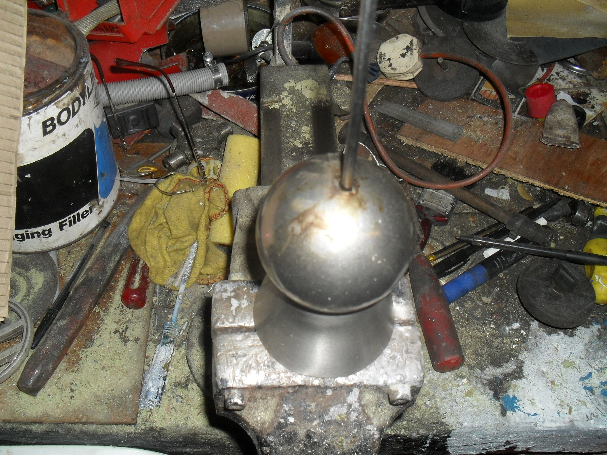 Drilling a ball bearing (4" diameter ) whilst making a Trophy for a friend who has just written his Vauxhall VX220 off