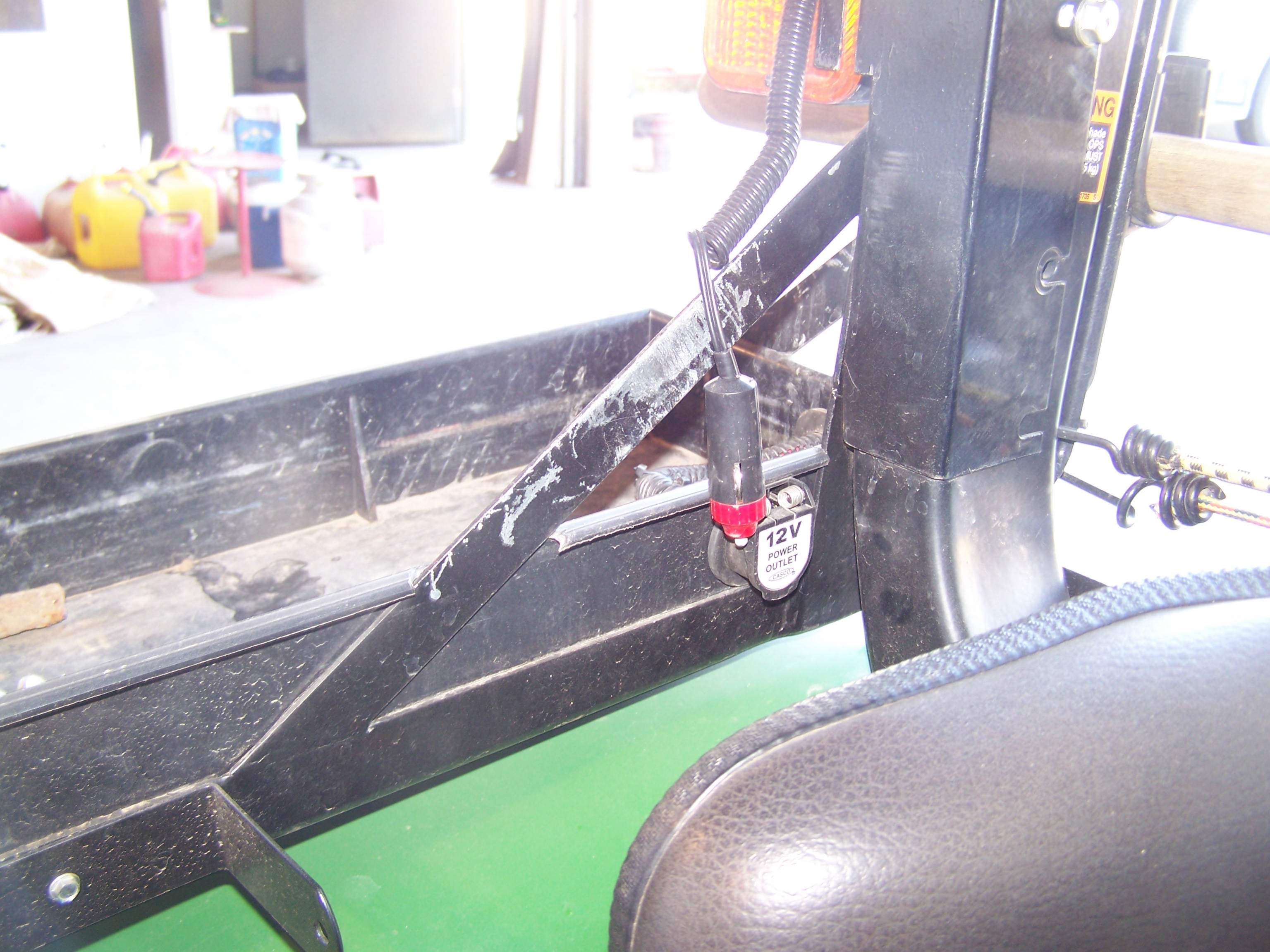 Here ya go... the 12v plug came from my local farm and ranch store. Power is drawn off the starter hot lug. Nice thing about this plug is a person can charge cell phone, or adapt other 12v things to plug in...ie.. lights, mp3, spotlights, etc, so power is always there when needed.