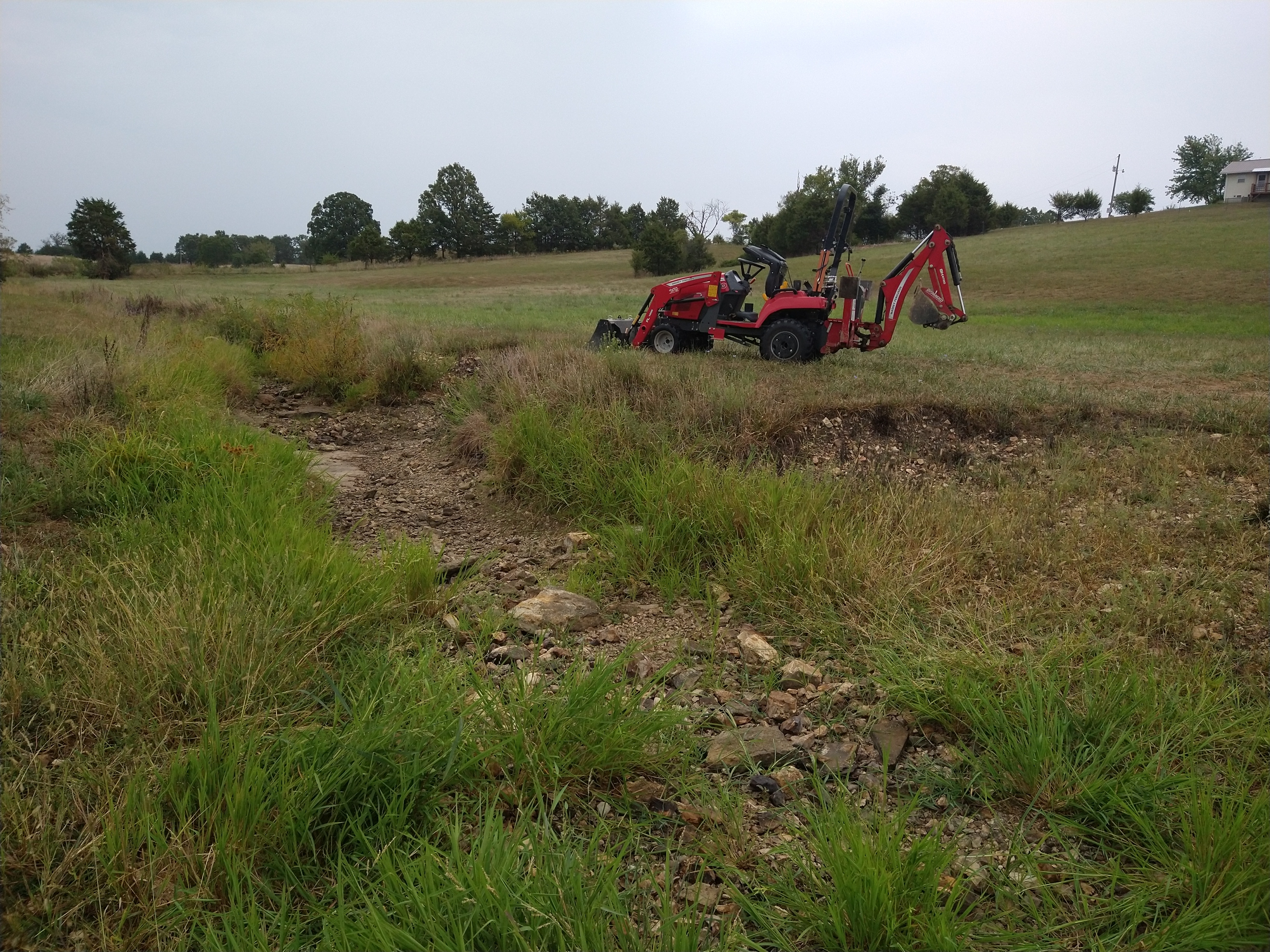I cut the creek banks back some to be able to get across a couple of years ago, as my tiny tires couldn't climb the banks, and just up stream of there I had tried digging a āwatering holeā to have a deeper spot to suck/pump water out to water my trees ⦠this was the deepest spot on my property, and earlier this year there were fish up to 3"+ in there, as it dried up, I saw raccoon tracks ... Hopefully I can get it deep enough, and enough water to get the fish through the next dry spell ...