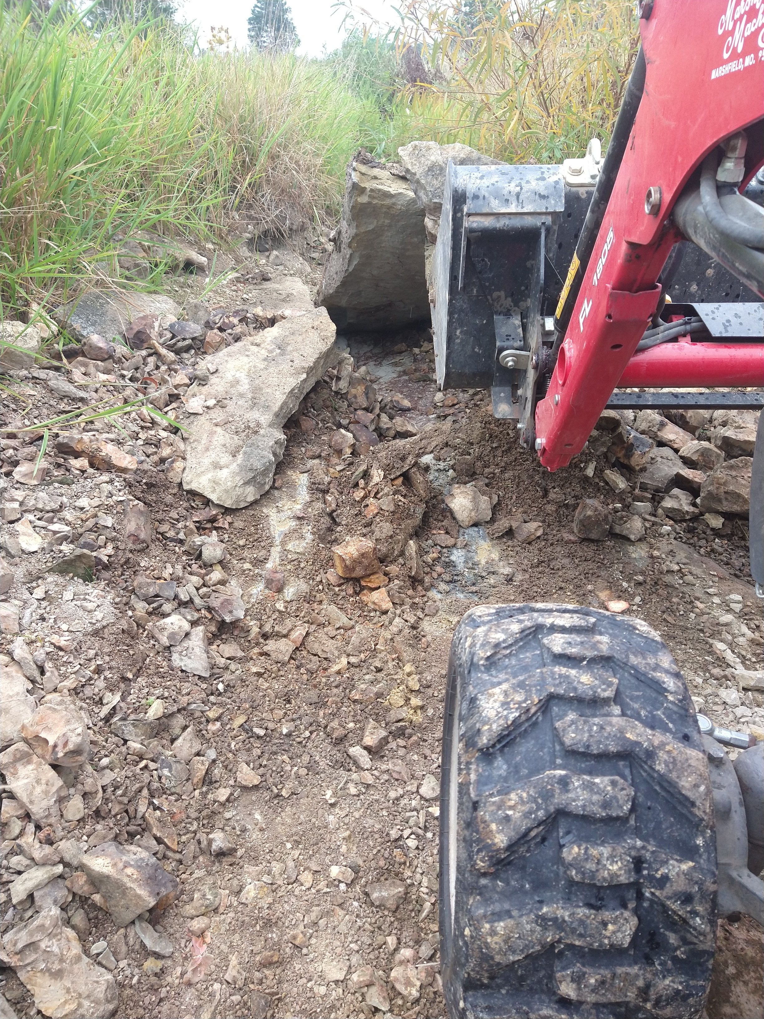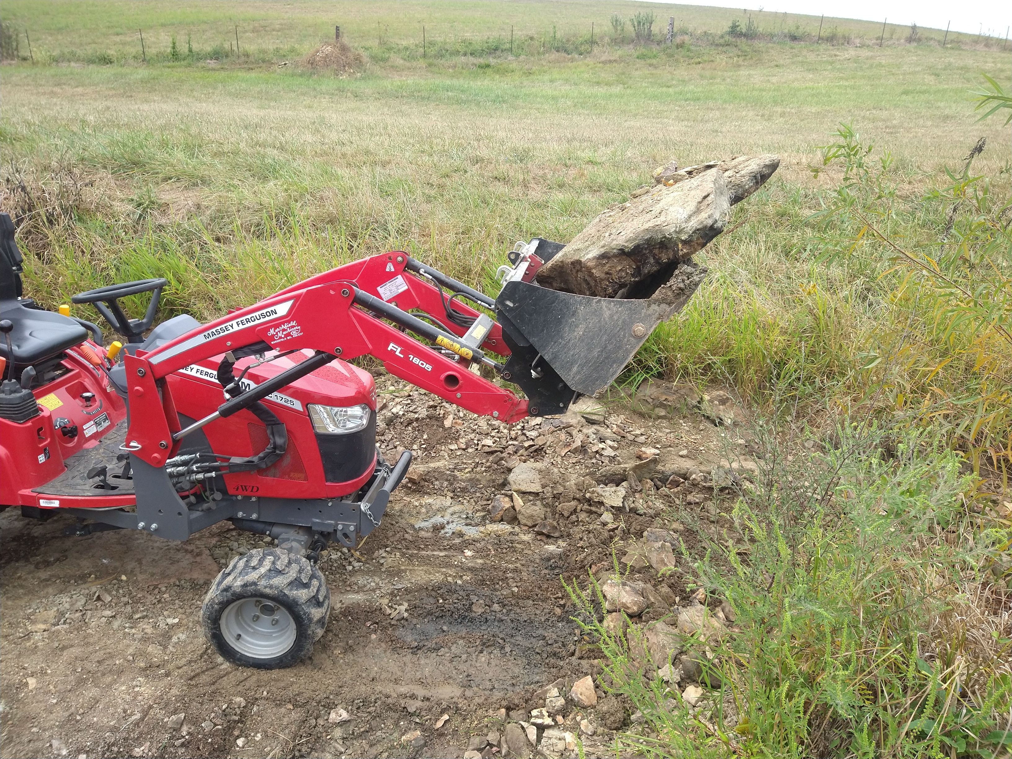 I got home late this morning, and put on the backhoe (BH) on my Little Baby Fergie as it was starting to sprinkle, I've only gotten .62ā of rain in the past 2 months, so it was very welcome, but I was hoping to clean out the creek that has been dry, and hopefully widen, and maybe deepen it, it has what I call ābedrockā that I have dug down to before with the BH, but it's like sand stone . . .
