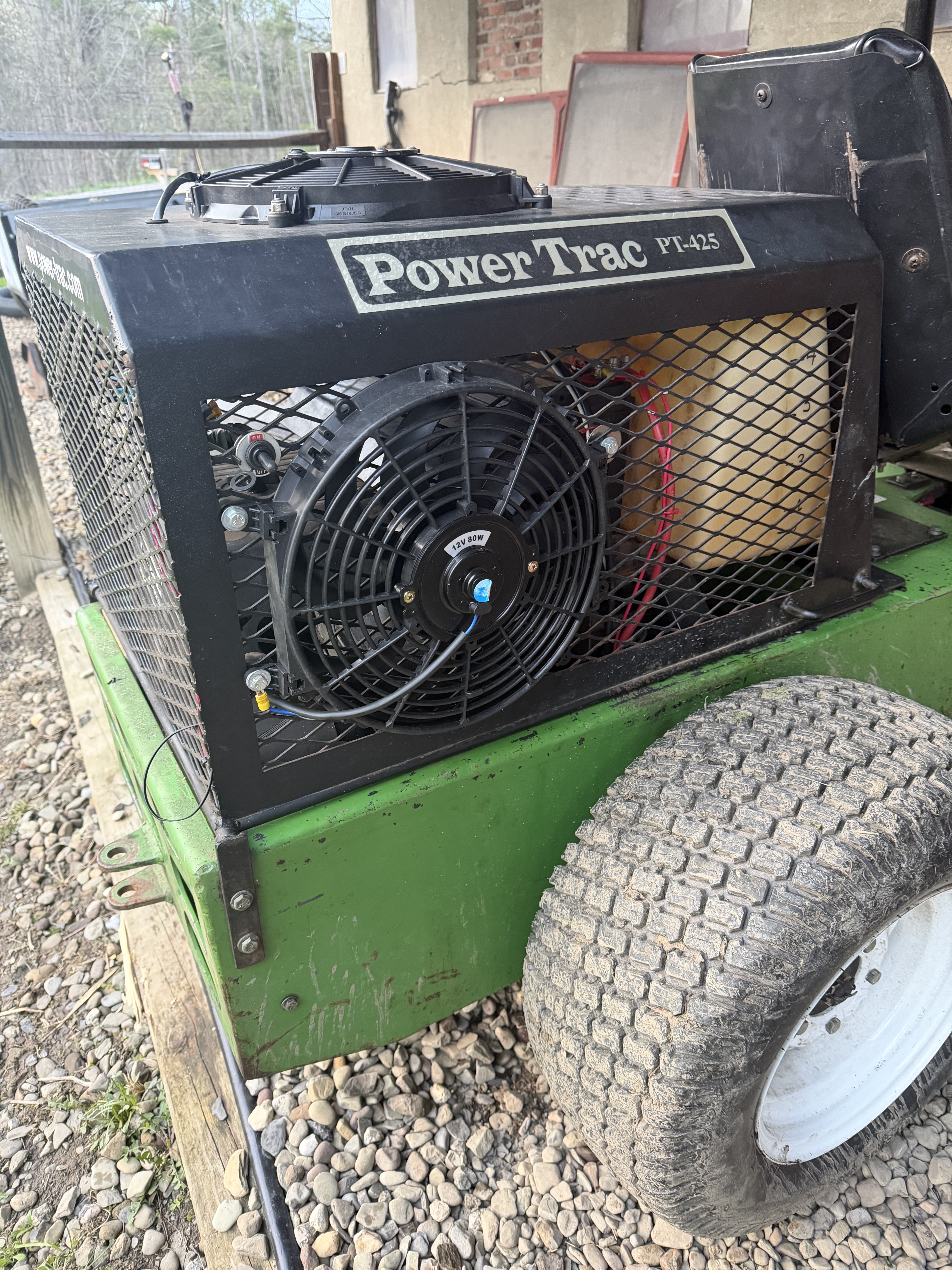 It was a rough winter. Early this winter I was doing a lighting upgrade and between my stupidly and some loose wires my PT425 went down. I blew both coils on the Robin engine. Fortunately I found a used set. Now it’s time for me to overthink things in the spring since it’s too wet to do anything. Seems like heat is the biggest enemy of the PT. I cut some luan and set it in the back of the engine figuring it will prevent the recycling of hot air. I also set a side fan but only with a manual switch. I would like to set it up and activated like the trans cooler but not sure where it would be activated.