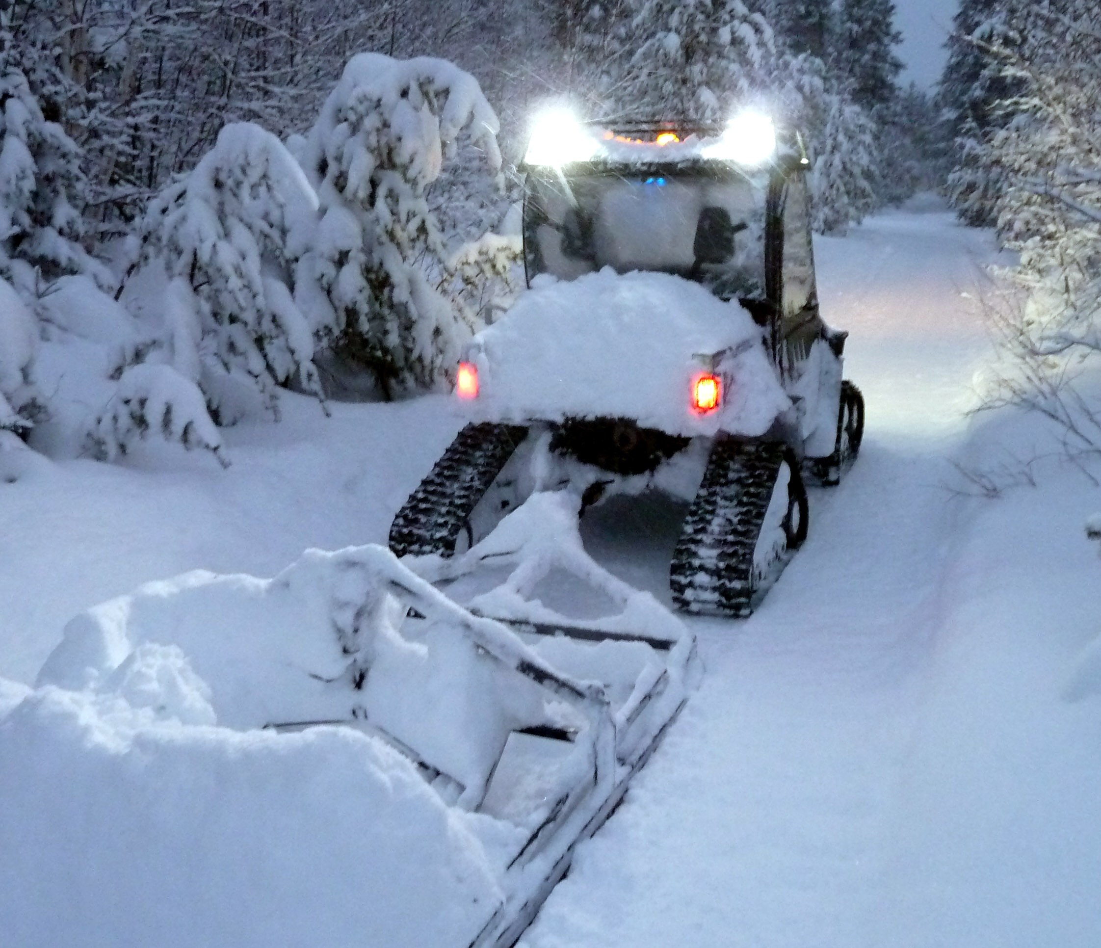 We had to get our trailer out for the 1st time this winter so as to get to the cat clowder on Thursday. Who do you call to get it towed out?? We've had rain here this winter, so lots of ice on it. Our snow pack might lower this year, due to all the warm weather we've had. The boss was sitting on about a foot of hardened snow but that gave him more traction. No problem.