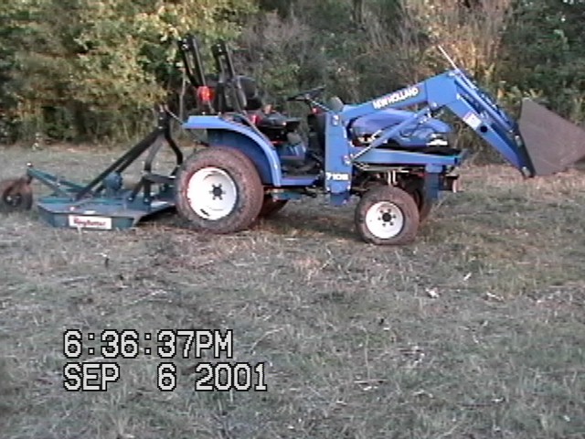 1" Trees are no problem. Ive done 2" plus, but i push them over with the loader then slowly back the hog over them at a high setting then lower on to them. Turns them into spliters if ya do it right. Take the big ones slow. It will spliter the stump down to about 2" high and rot off by the following year as ya mow. I rarely staul my tractor bush hoggin. here is a pic of a path i bush hogged into my woods.