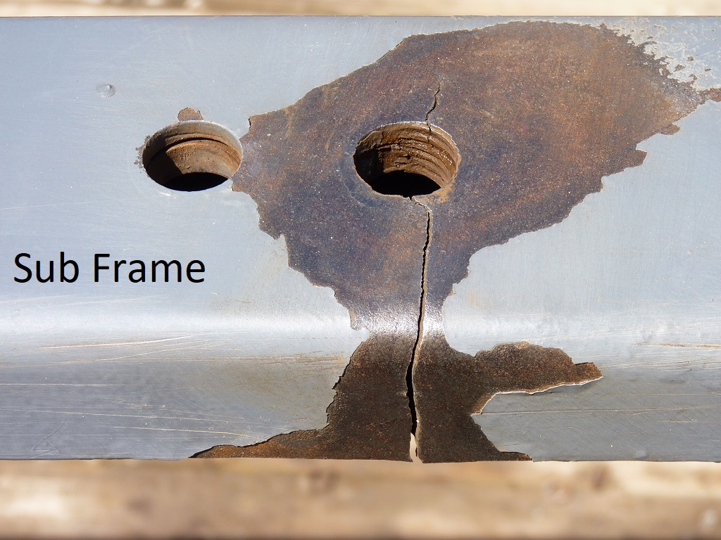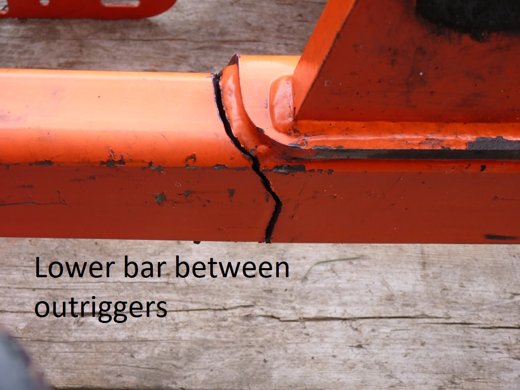 IGSCC on the orange square tube is my bet, you would need to get a micro view to verify. The location is at the toe of weld, heat effected zone, and at the point of concentrated high stress. Remove the stress or upgrade the material/design. Grind out defect, full pen weld, plate over, consider additional material but know that being that tube thickness is likely less than ideal... you will most likely change the location of the stress concentration to the end of your plate/gusset area and move failure down the line. Also note the weld start/stop at the corner of the tube. This creates a likely failure initiation point at the high stress corner combined with that start/stop.