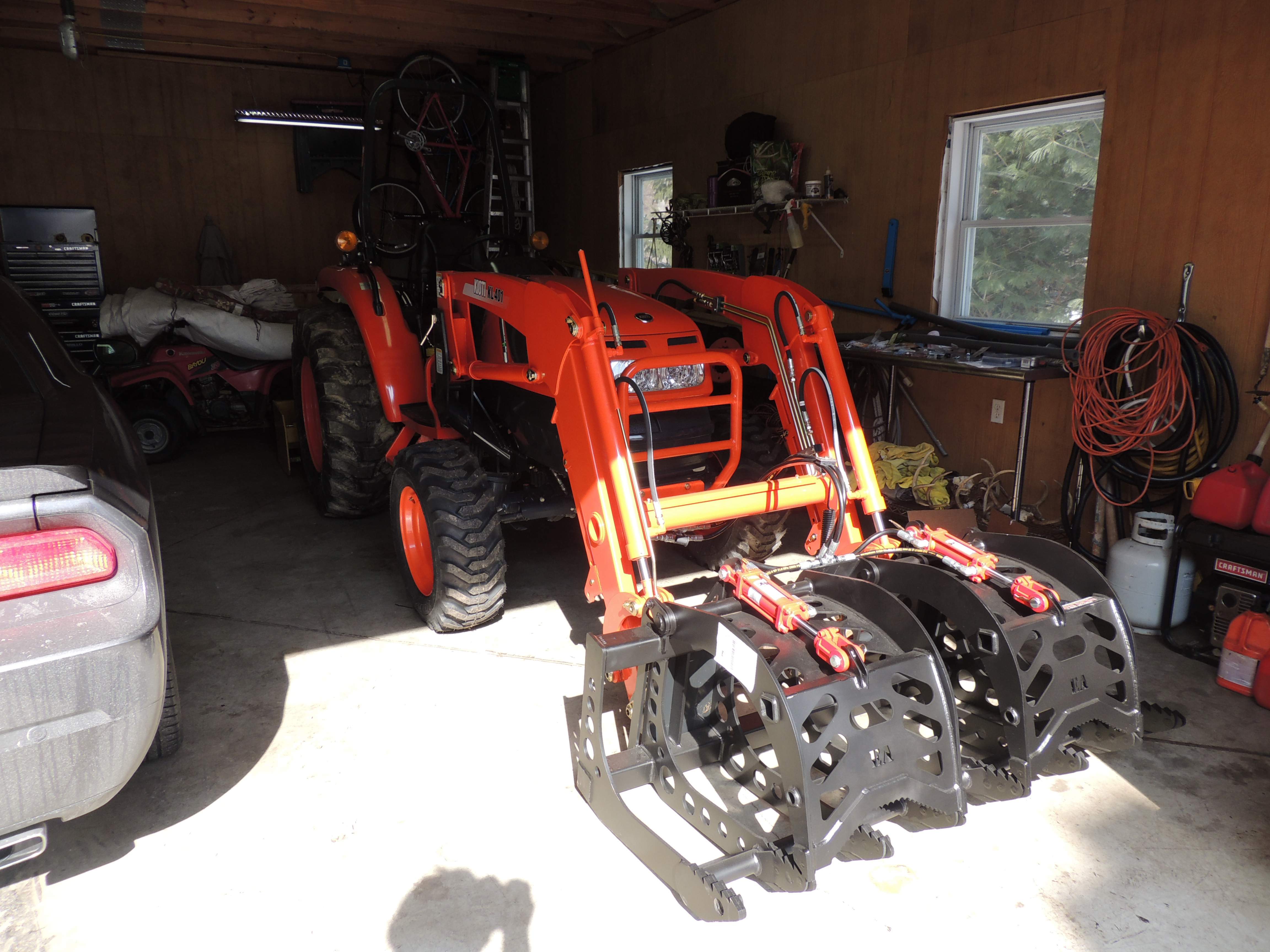 Measure them. I don't think a CK35 will fit thru a conventional garage door with out lowering the ROPS. That becomes a PITA real quick. If you put a canopy on it, it might not fit even when it's folded.