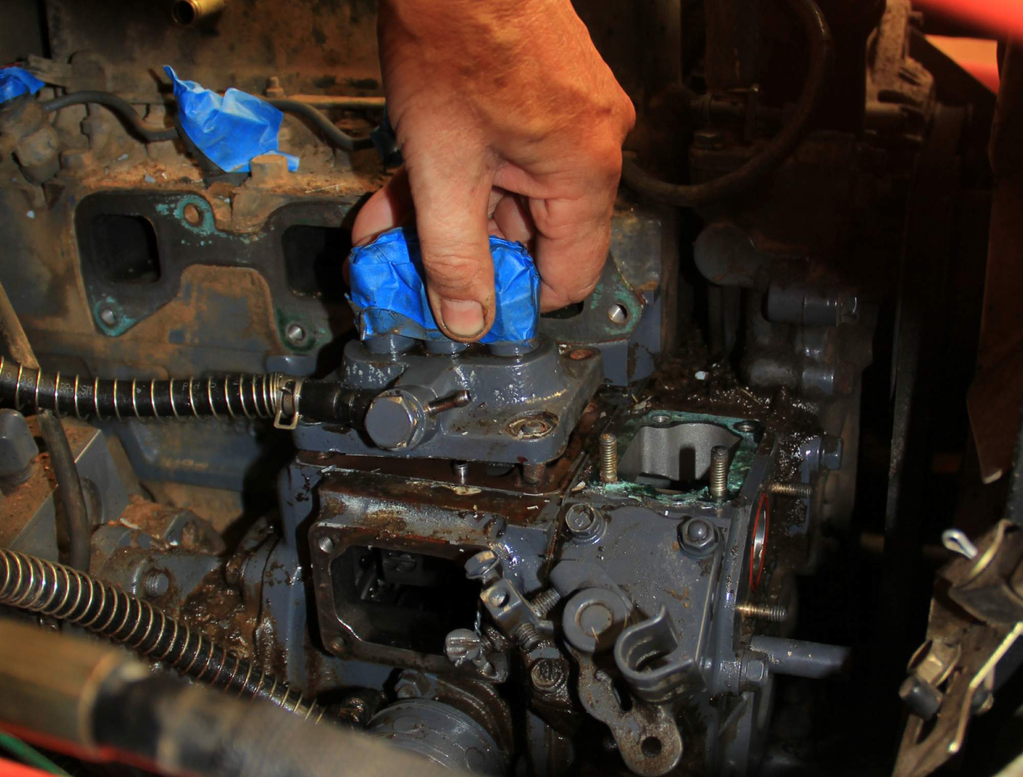 or http://2881neches.com/kioti/fuel.jpg. No problem. However, if I lose the fuel line going to the injectors (#3) I get nothing. Thought the fuel shut of solenoid #4 would not work but it does. There is an orange cap shown here as #2. Can't find any reference to it in my manual. What is suppose to go in here. Oil or what?