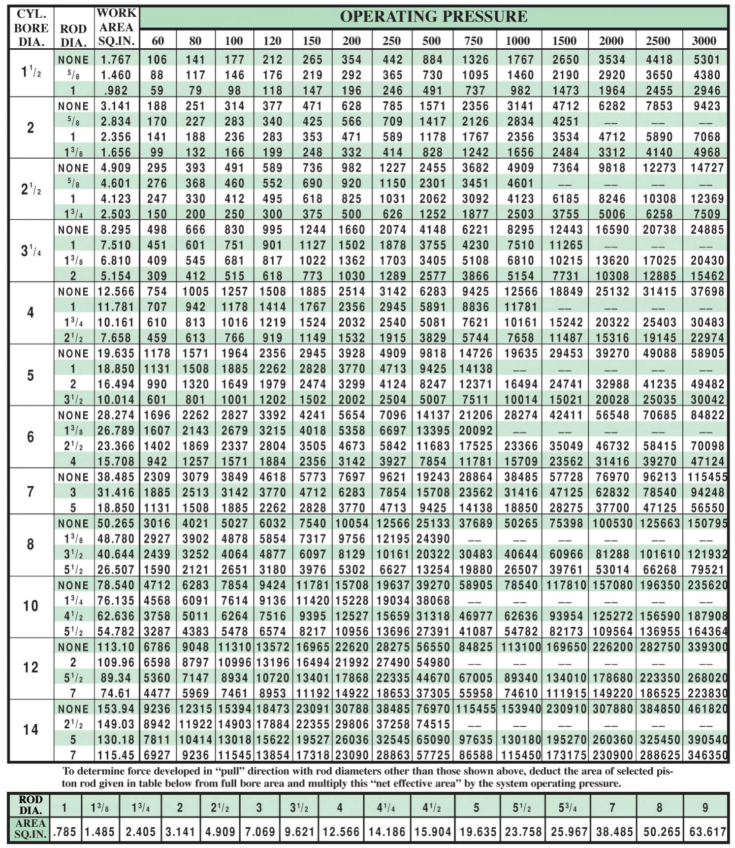 Here is a chart for force of a cylinder with both extending and retracting forces. There tons of these on the net.