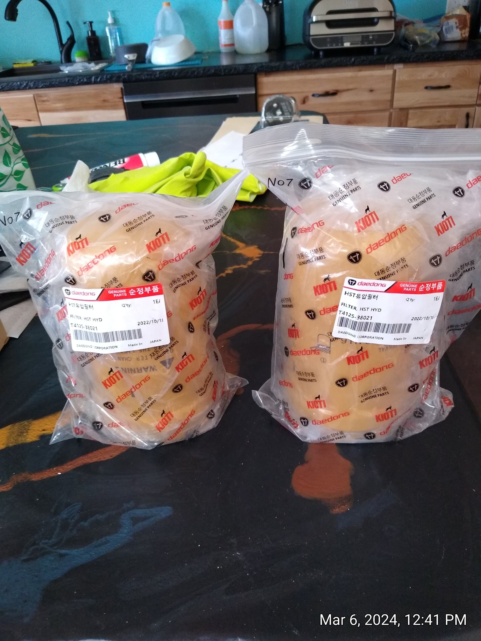 I have two kioti hydraulic oil filters T4125-38021 , unopened and still in bags ... The dealer sold me these and they were incorrect for my model kioti tractor, I didn't know until maintenance time. The dealer is 1100 miles away and hasn't responded to my request for exchanges
