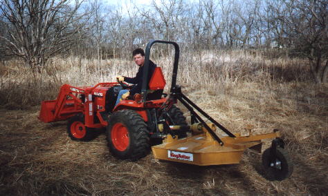 Yeah, I wish I had the XB rotary cutter instead of their standard cutter. I got the 48 because that is the size both the BX and the 2410 are intended to use. The 2410 has plenty of power for the 48 inch but I imagine if I had gotten the 5 foot it might get light on the front without the loader. The standard cutter really does not fit the BX or the 2410 very well. I had to modify the thing by drilling the two lower bolt holes out for cat-1 pins and the turning the pins in. The same for the 2410, with the pins in the standard top position (the only one there is unless you buy a 100 dollar half inch drill and make them bigger!!!!!!) the 2410 has very little lift left to clear the tailwheel. With the pins moved down it works correctly and with the pins in it is easier to hook up--very easy. I think the XB cutter would eliminate the need for the 100 dollar drill and 30 dollar drill bit. I like the dual tailwheels on the XB also. Why exactly on the standard cutter are the pins so high I have the lift lever nearly full up on the 2410 to engage--it seems KK needs to refigure the pin placement for the smaller tractors.