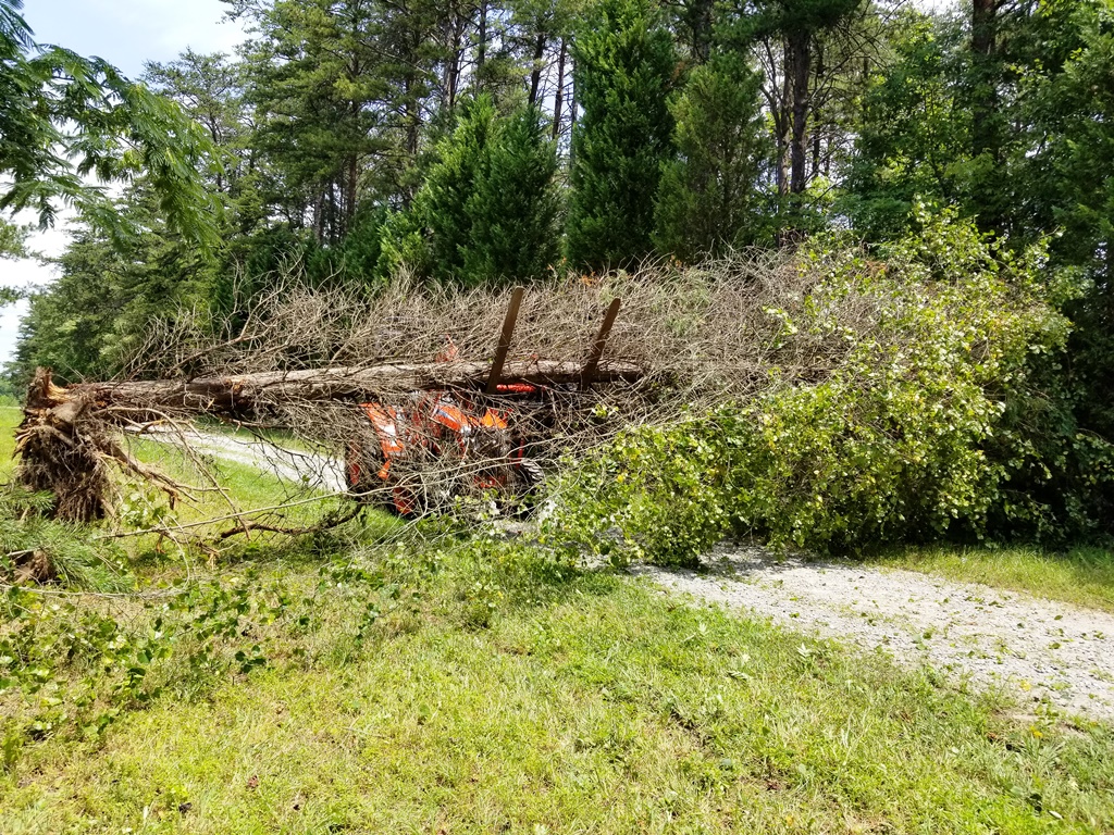 Still impressed by what this loader can do. Not a huge tree and no idea what it weighs, but had no issue lifting whole thing off ground. Tree was fallen over but some of root ball was still in ground. Had no problem plucking that out either.