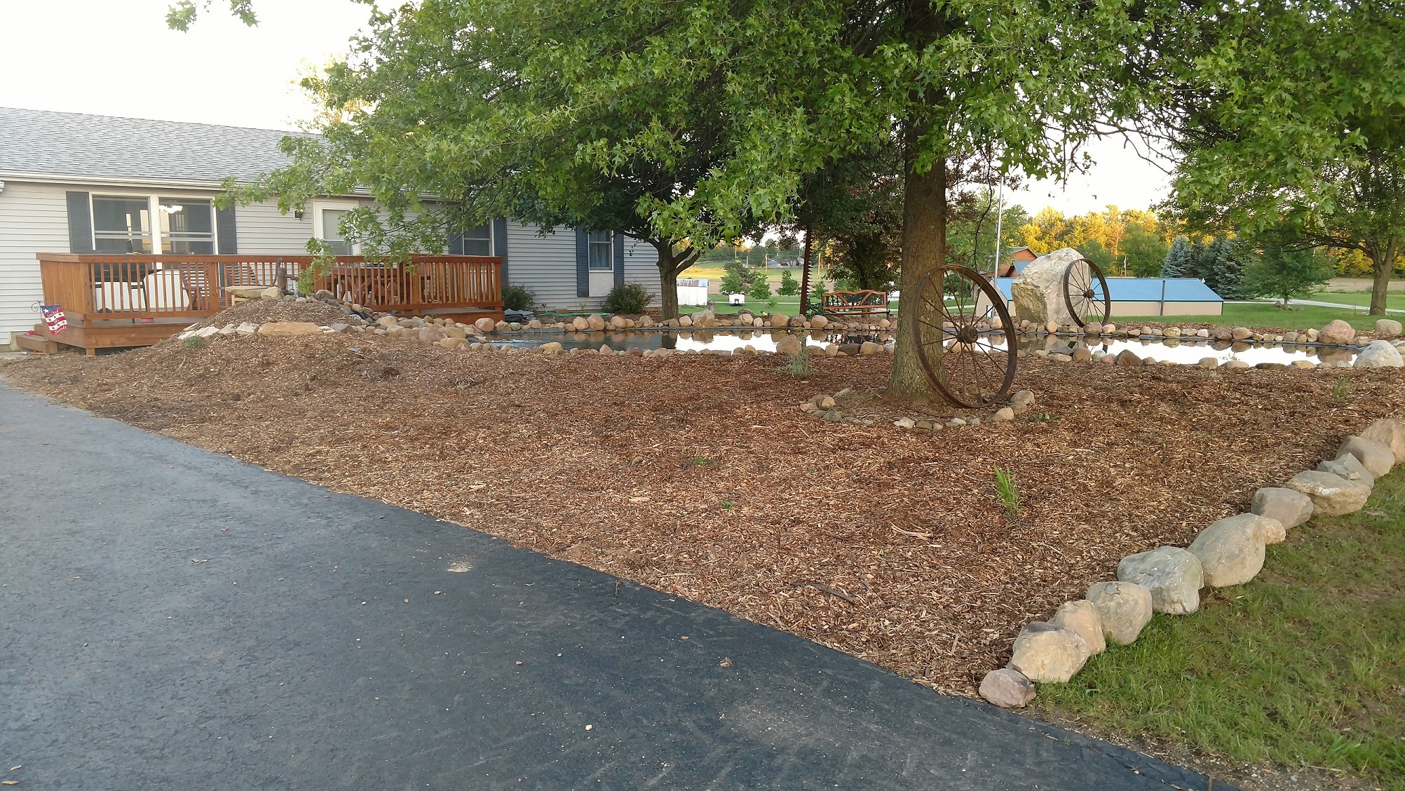Fast forward to today, I have moved. Back in may I dug another ornamental pond. Bigger this time. Approx 20x50, 5-5.5' deep, and about 14000-15000 gallons. (based on the number of hours it took to fill with a 6GPM well and 7GPM city water tap).