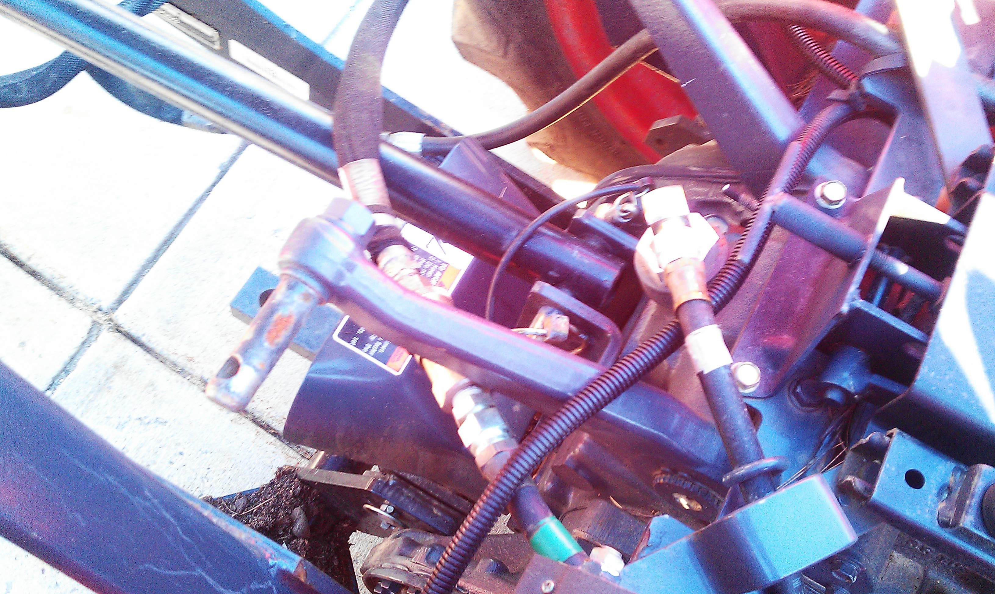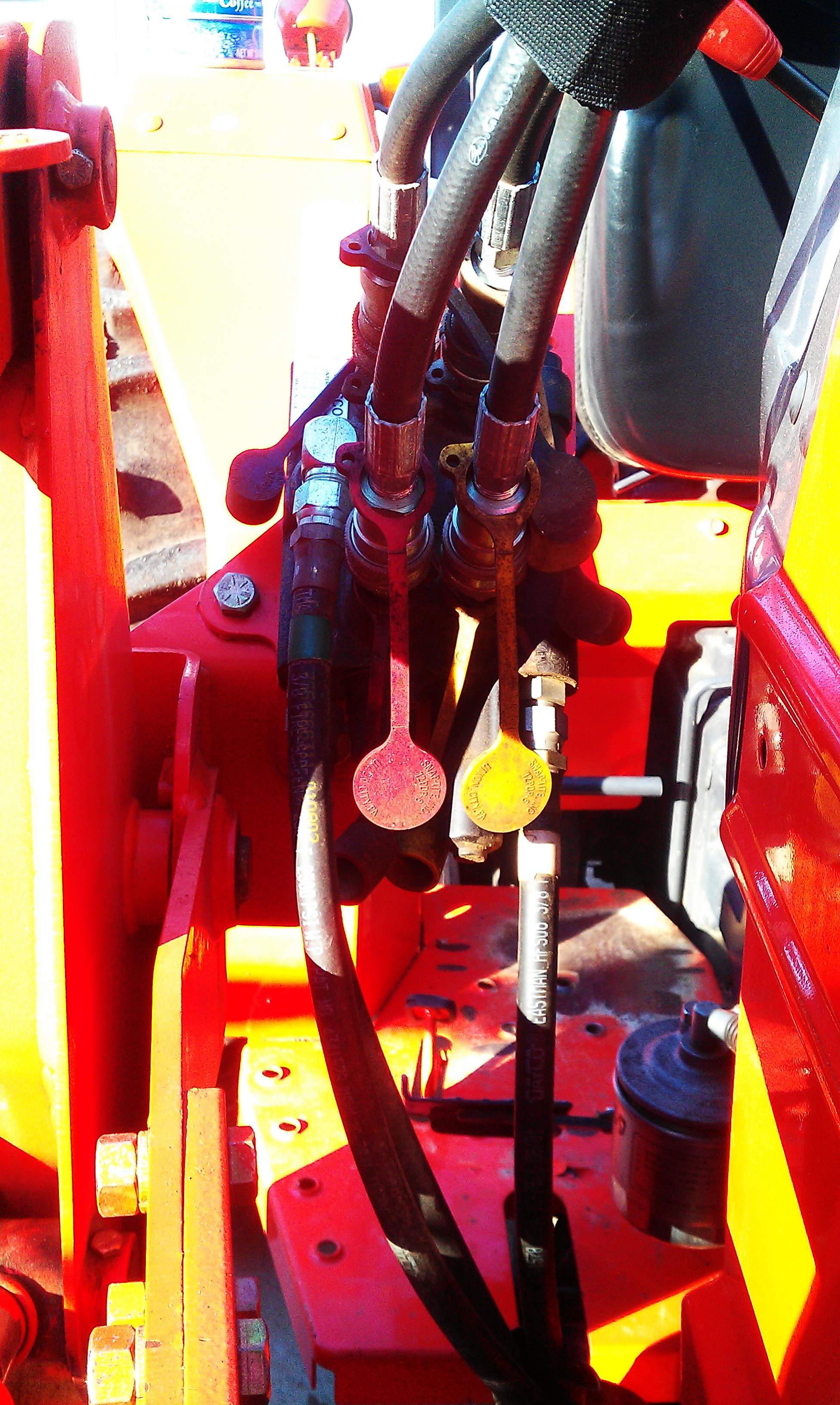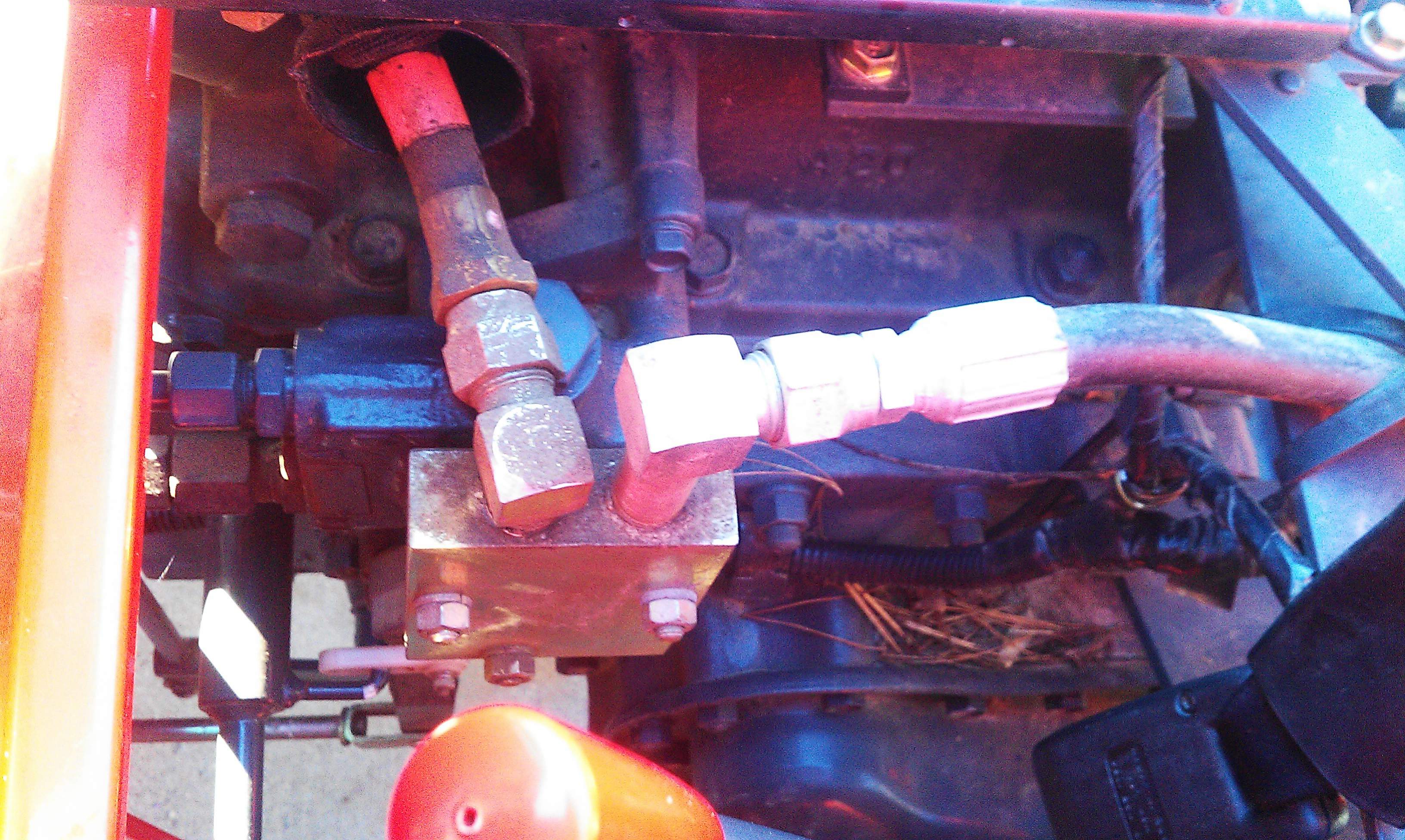 My tractor has a factory FEL. The power beyond (green tape) goes out back to supply my Woods backhoe. There is a block on the left side under the seat that appears to supply the FEL valve (orange tape) and a return hose from the BH. Additionally there is a hose going from the "out" on FEL valve to the back of the tractor between the TPH arms (grey tape). Is the hose with the gray tape dumping into the tank or is that for my TPH?