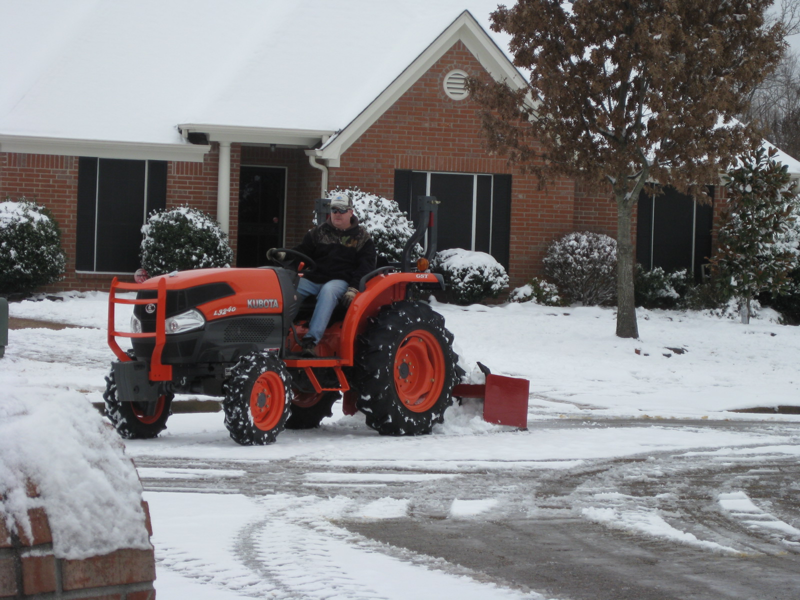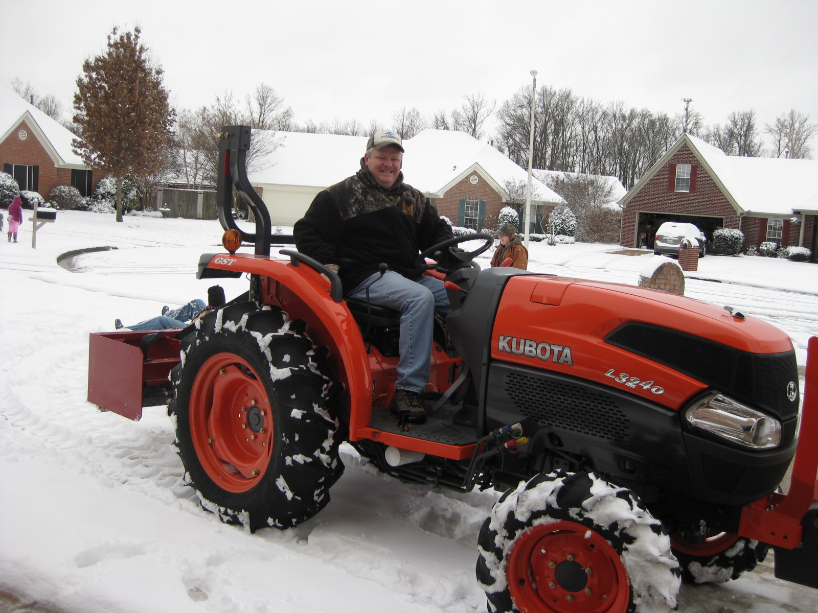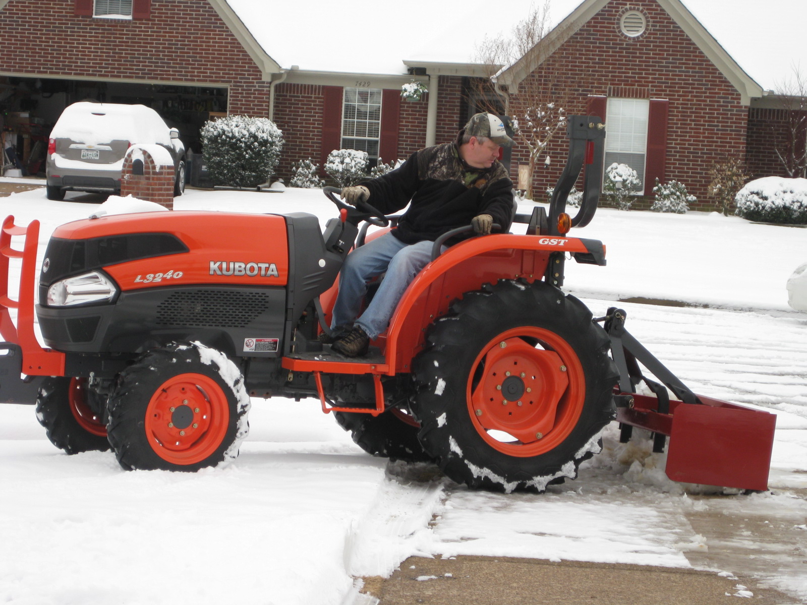 Here in West TN we had a amazing 4-6 inches of snow last night.. Kids out of school and play time! The Kubota is used at our farm miles away but lives with us here at the house. Couldnt stand it so I got out with the only thing I had to play with-- my box blade:D I know its not a real snow weapon like you guys have in the North but its was fun :D playing... it actual worked moving the massive amount of snow we got:cool: